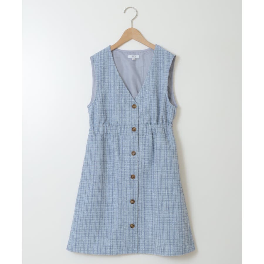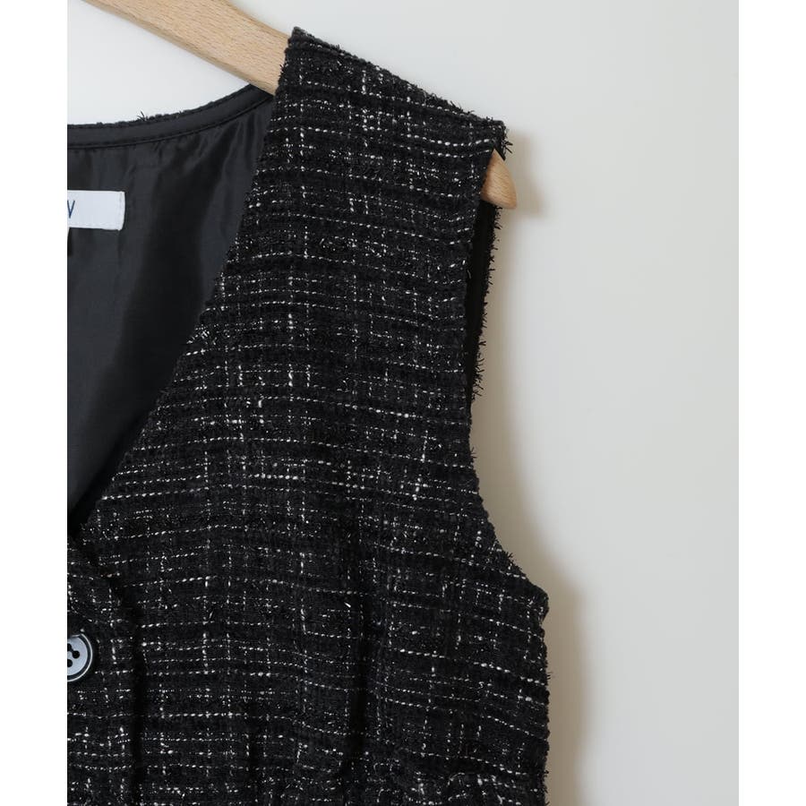 ・上品でリッチライクなツイード素材のワンピース。