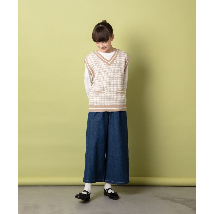 ・姉っぽ見えが叶うニットベストは一枚でトレンド感たっぷりなコーデが完成。