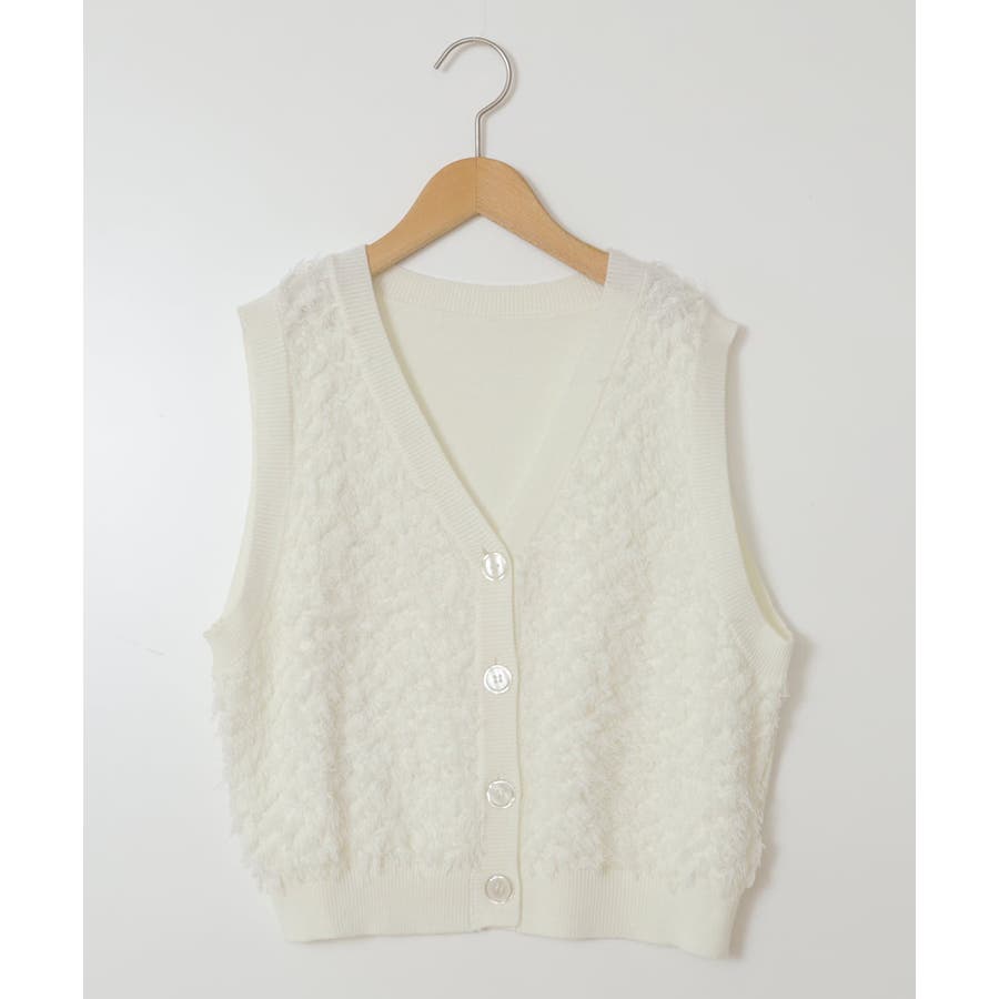 ・ニットベスト…凹凸感のあるフリンジ編みのニット素材。