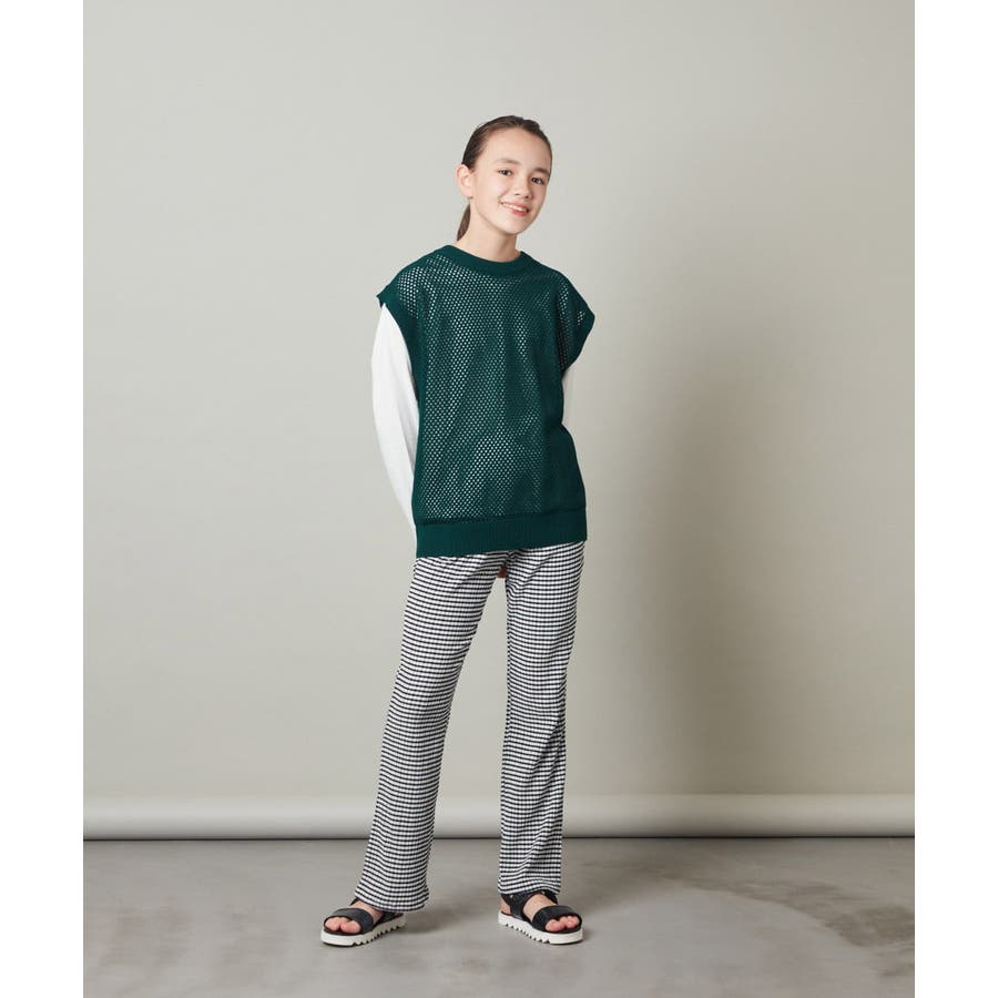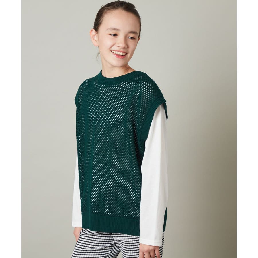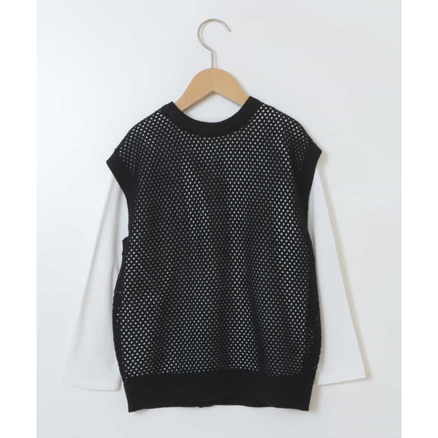 ・トレンド感のあるメッシュベストとシンプルな無地の長袖Tシャツの2点セット。
