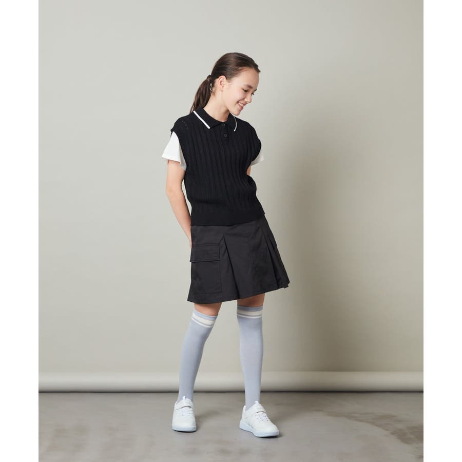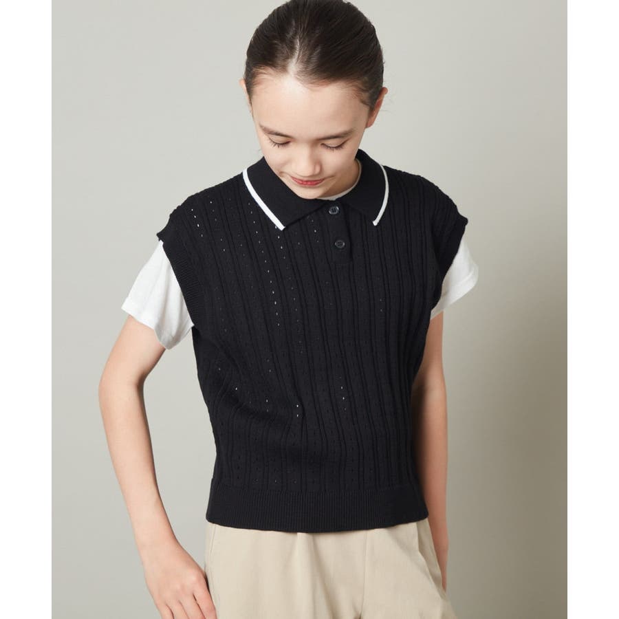 ・スポーティに見えがちなデザインもベストの編み地がアイレットになっていて女の子らしさアップ。