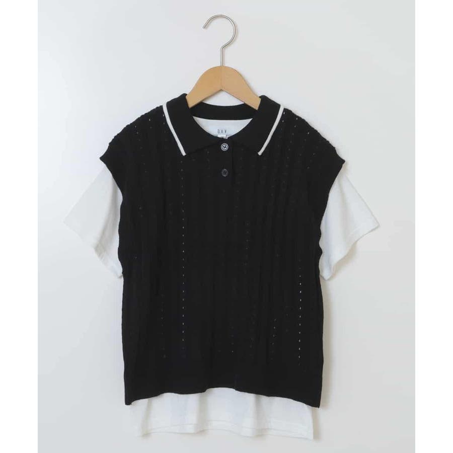 ・襟付きポロシャツ風ベストと半そでTシャツがセットになったおしゃれ見えが叶うアイテム。