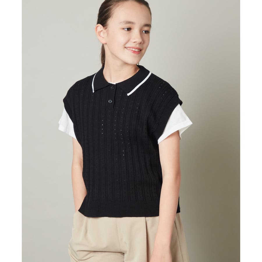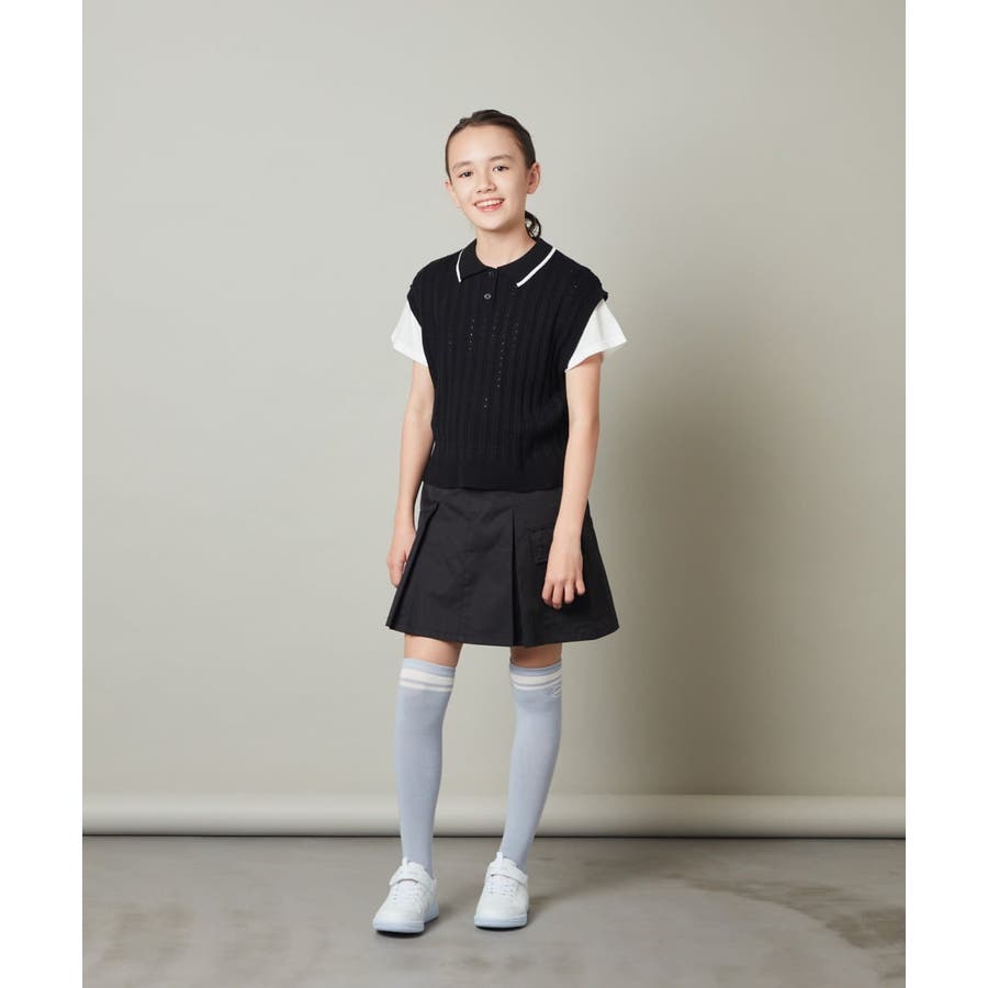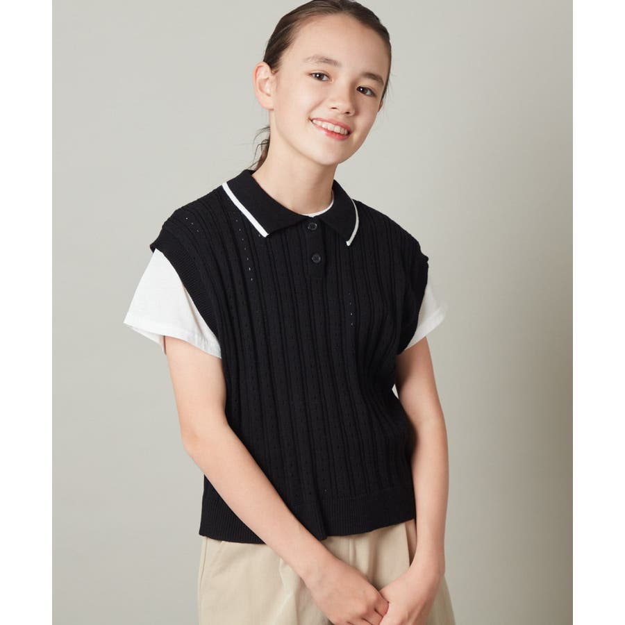 ・スポーティに見えがちなデザインもベストの編み地がアイレットになっていて女の子らしさアップ。