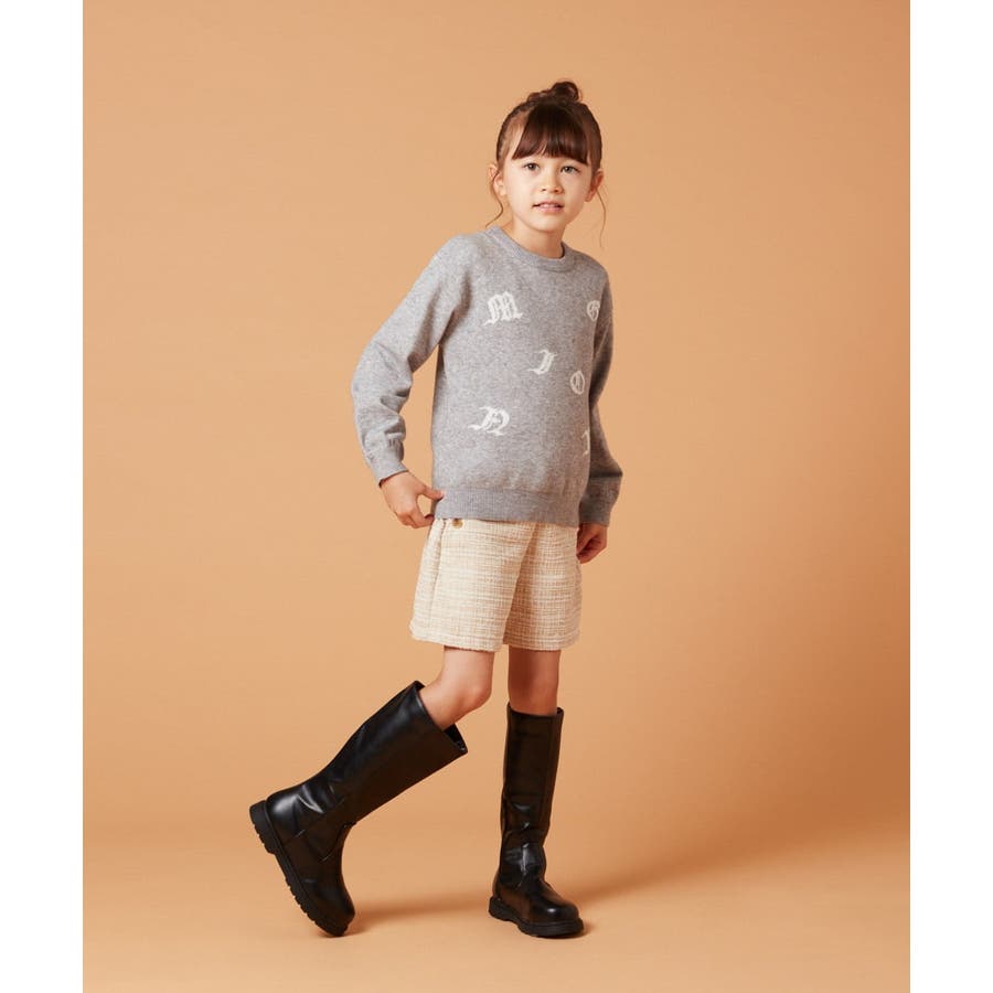 ・モノグラム柄は、ツイードのパンツと合わせて女の子らしくかわいいスタイルがおすすめ。