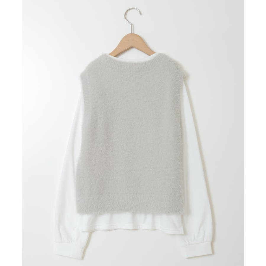 ・ふわふわ感がかわいいニットベストとシンプルな長袖Tシャツの2点セット。