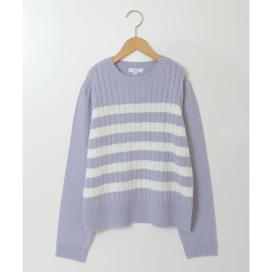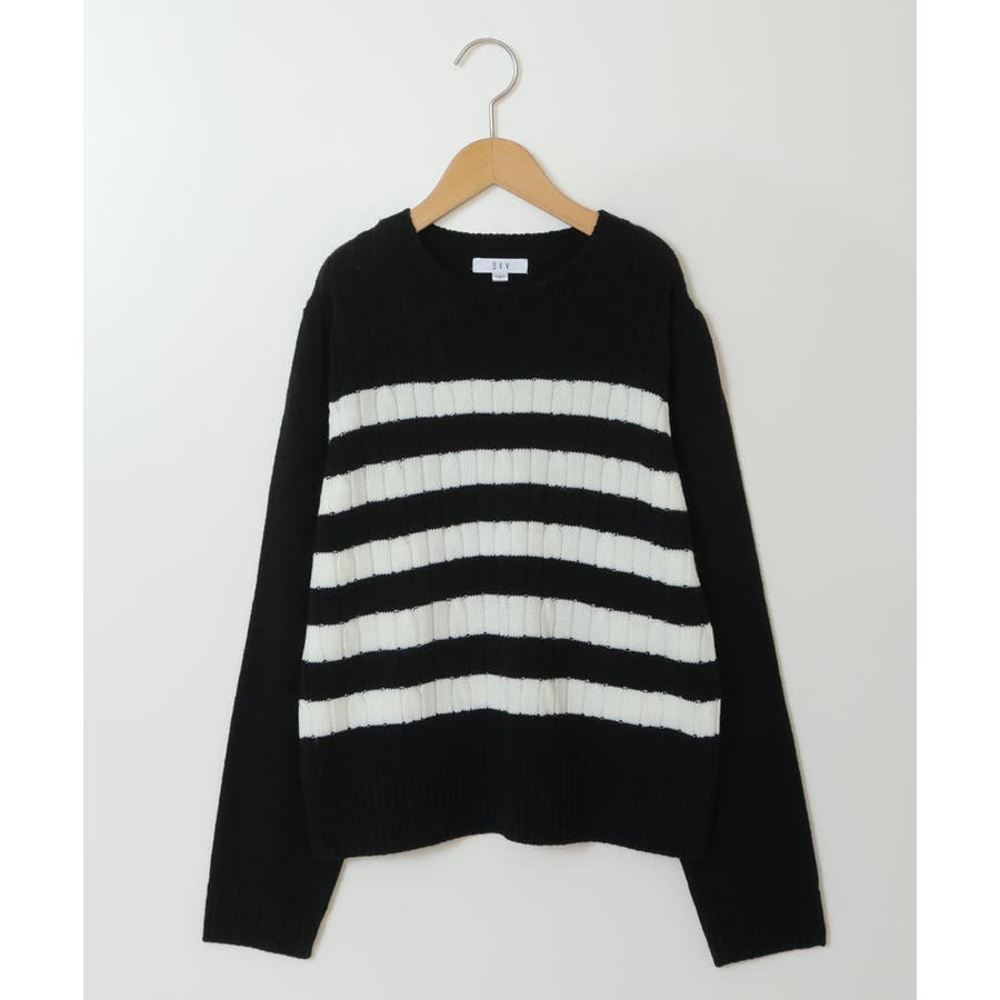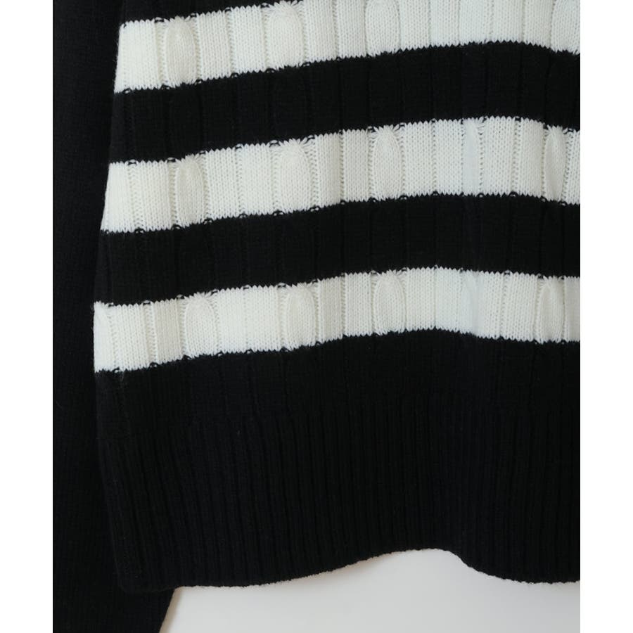 ・地柄にケーブル編みの入ったボーダーニットトップス。