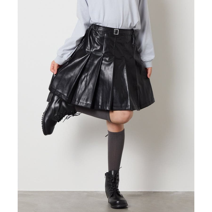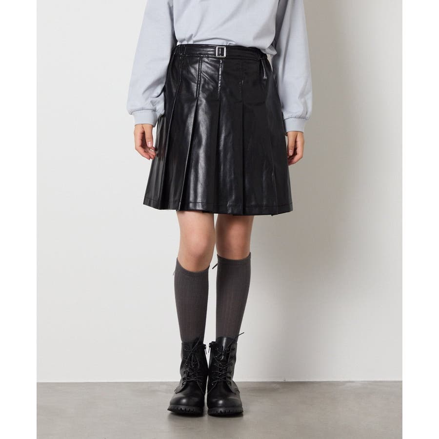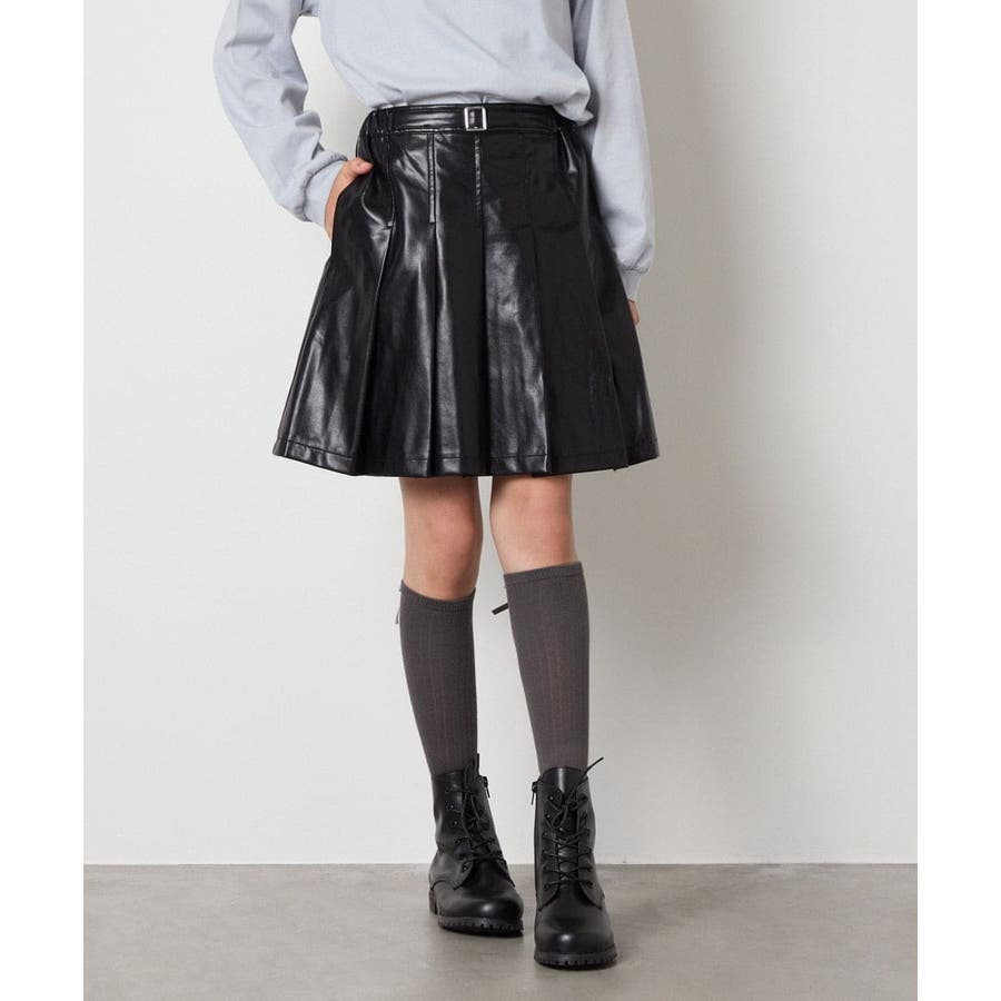 [120-160]フェイクレザープリーツスカート