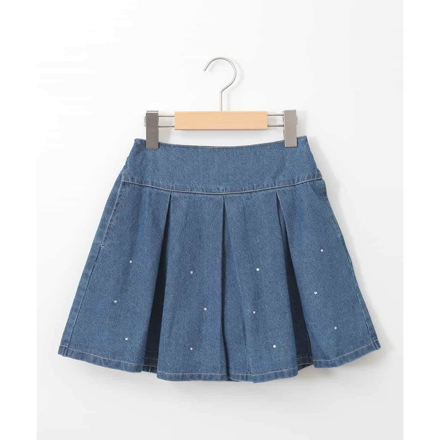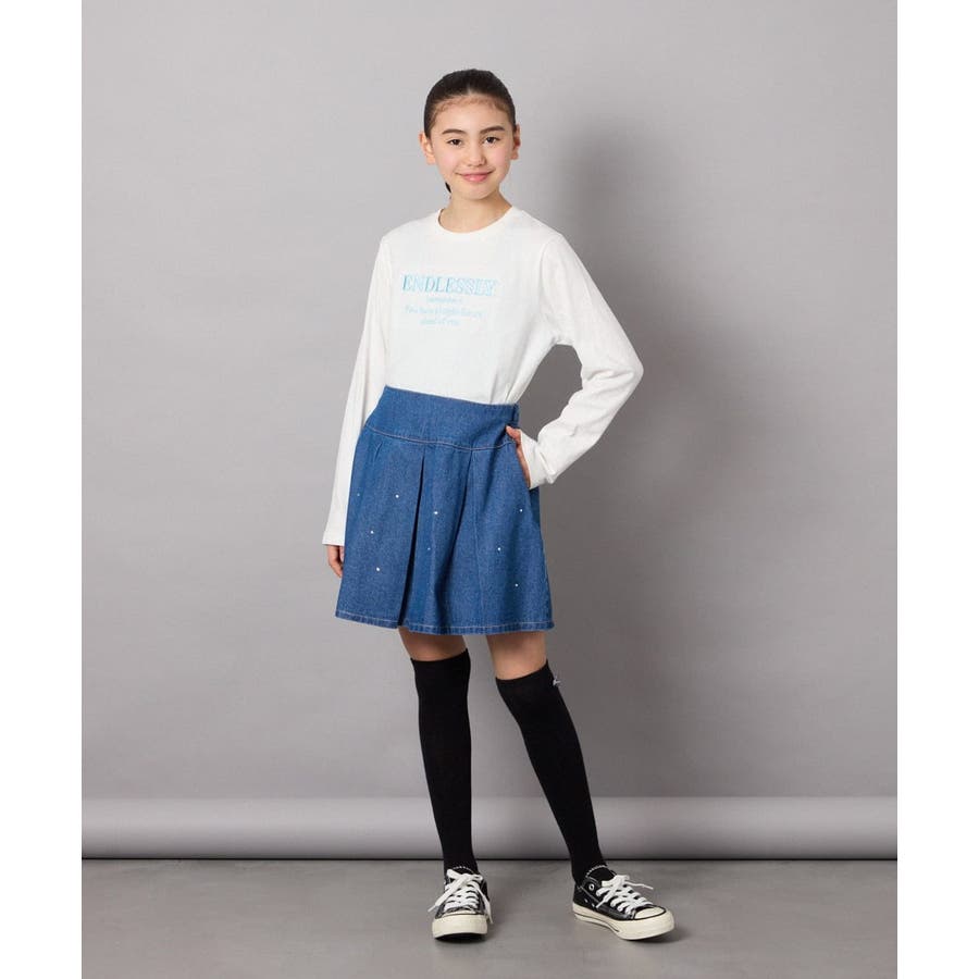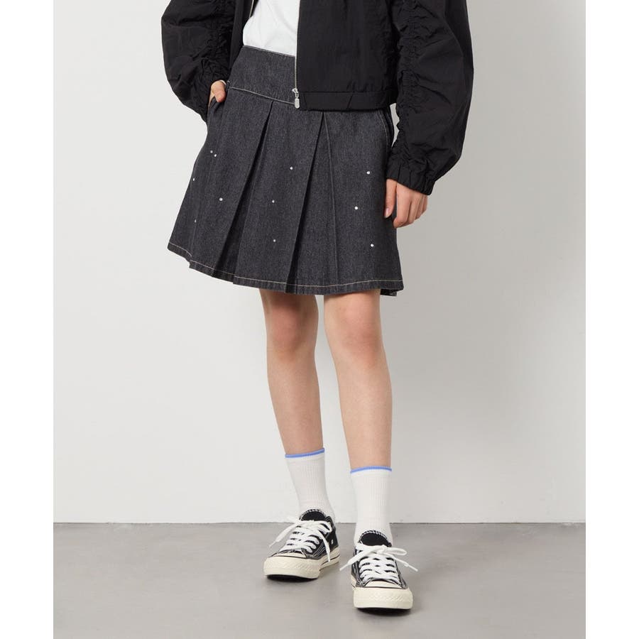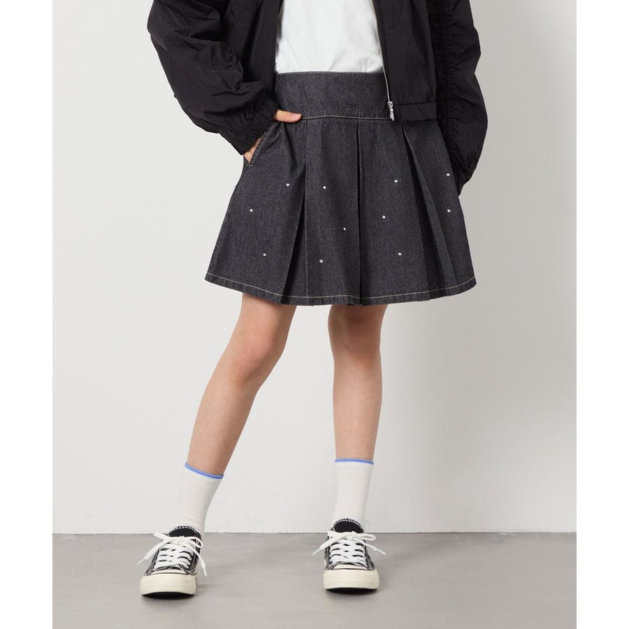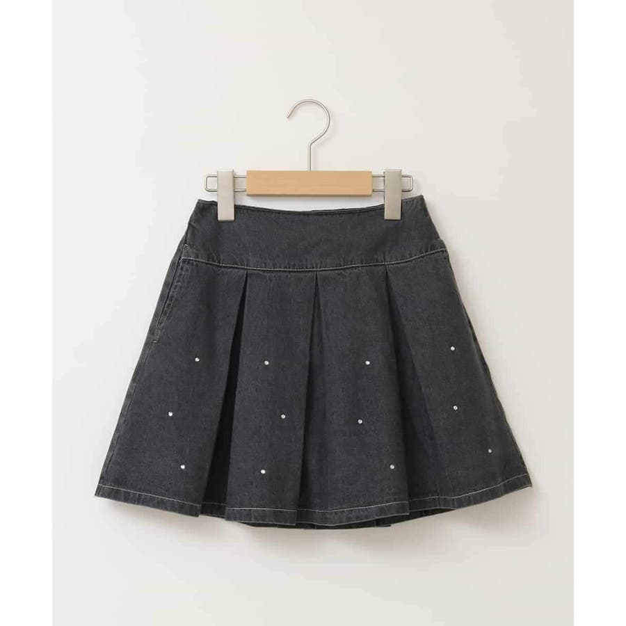 [140-150]ビジュー付きデニムタックスカート