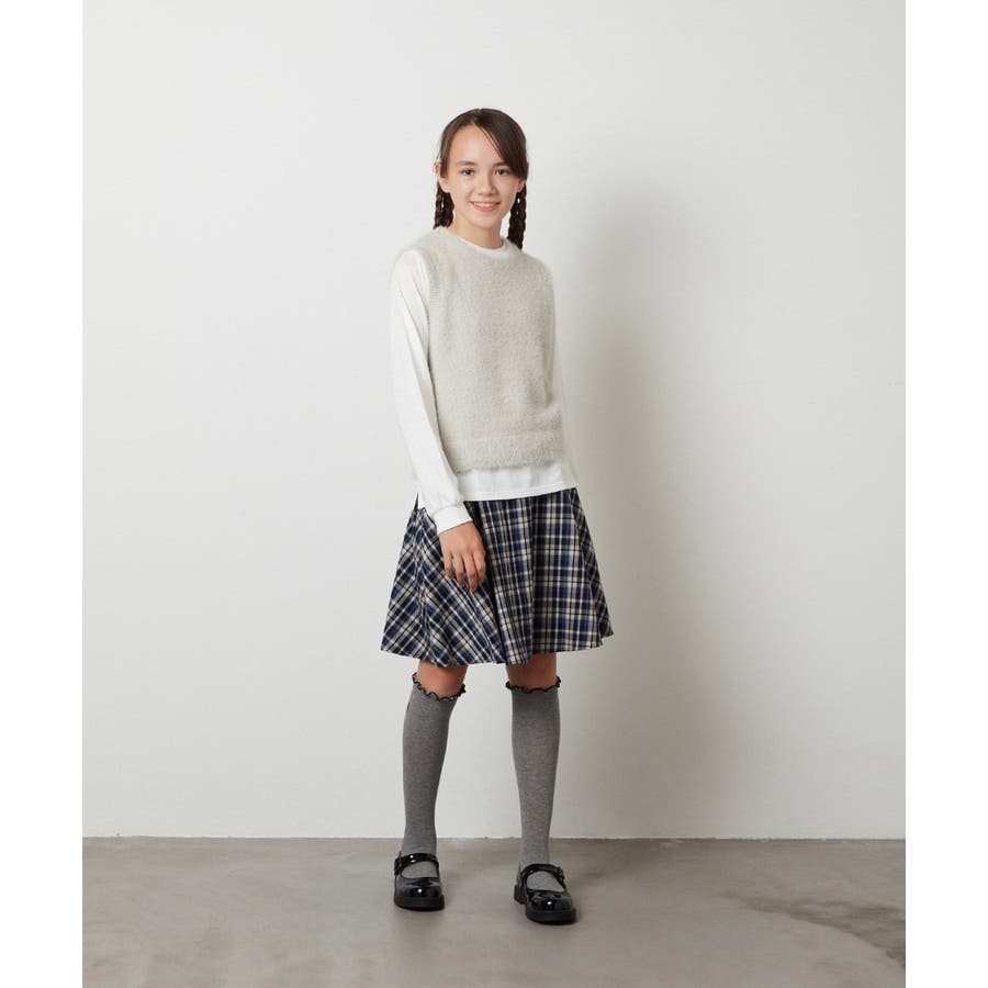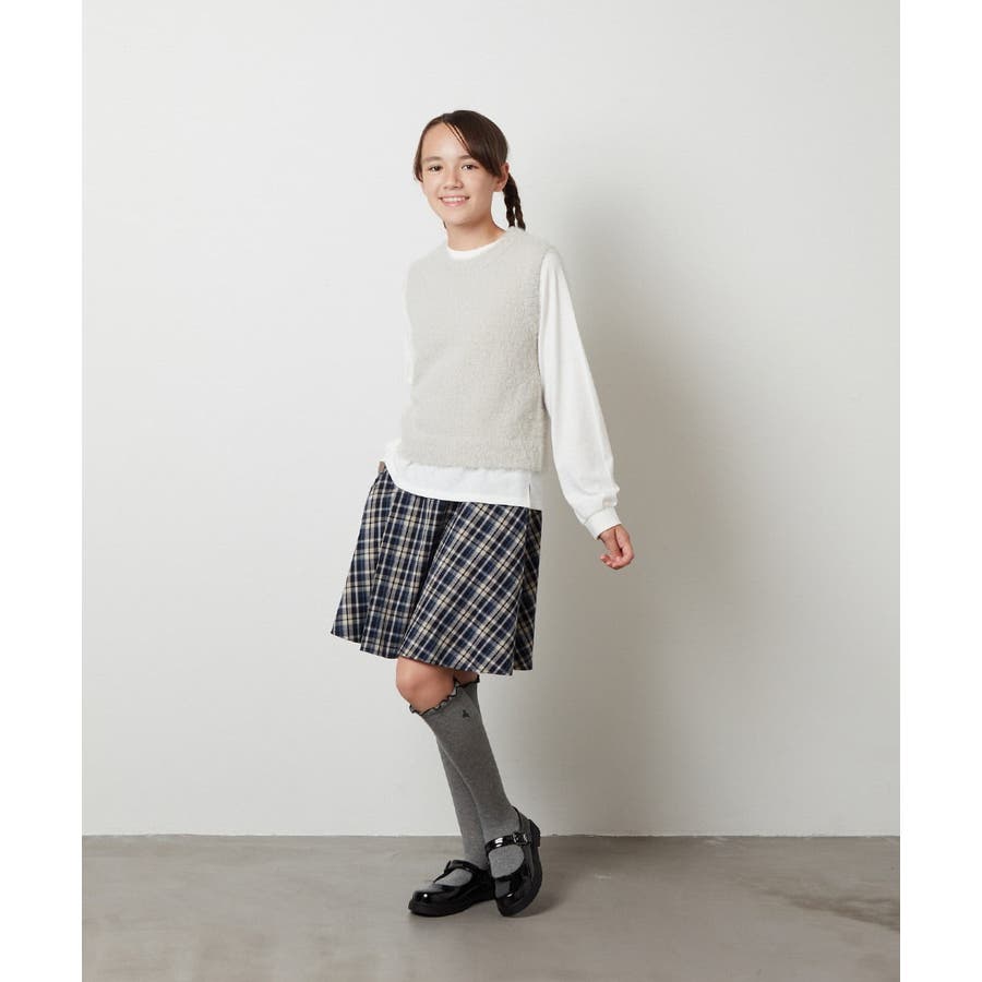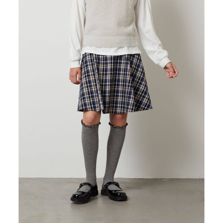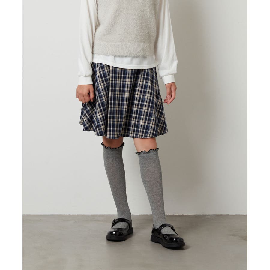 ・チェック柄はシンプルなロンTやトレーナーと合わせて通学コーデに。