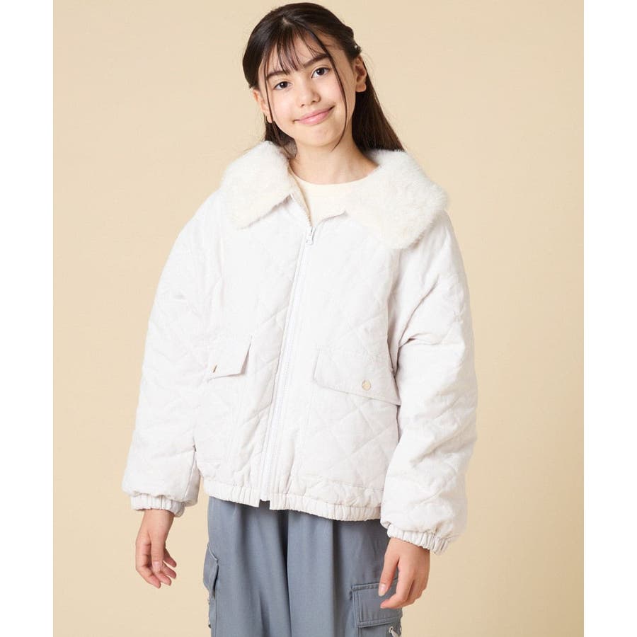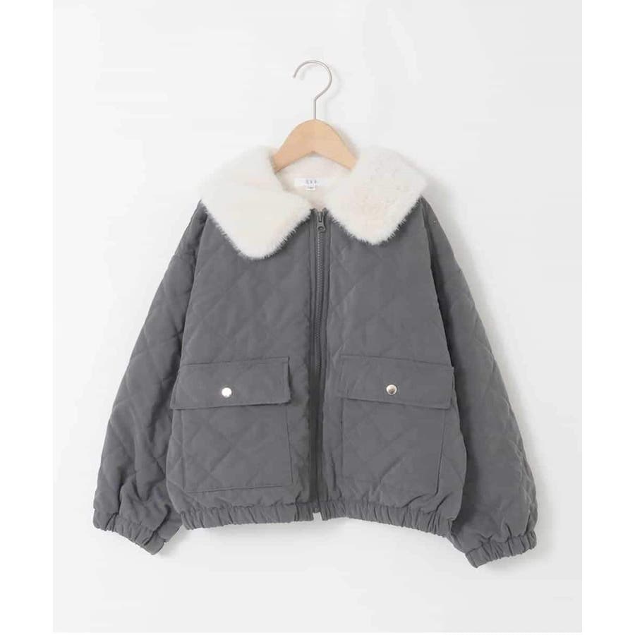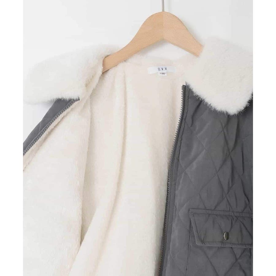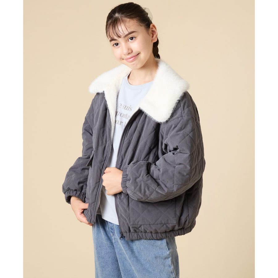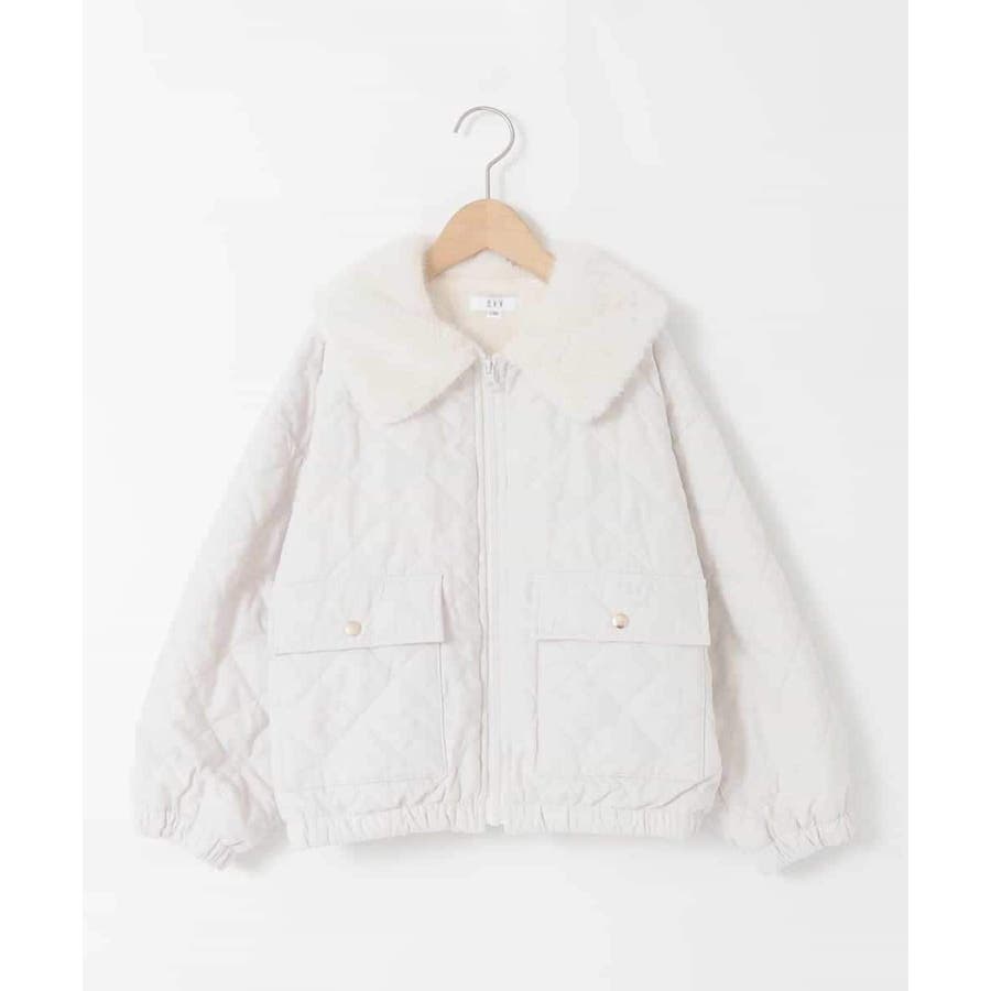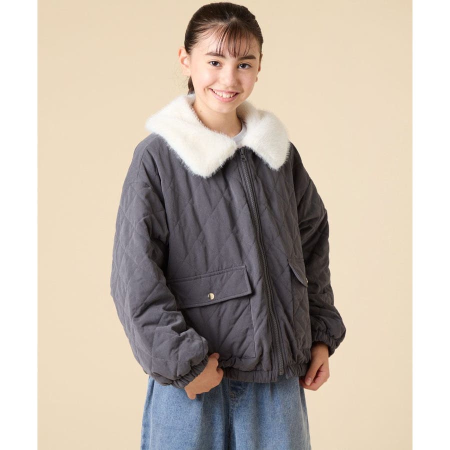[130-160]【お家で洗える】衿付きキルトボアジャケット