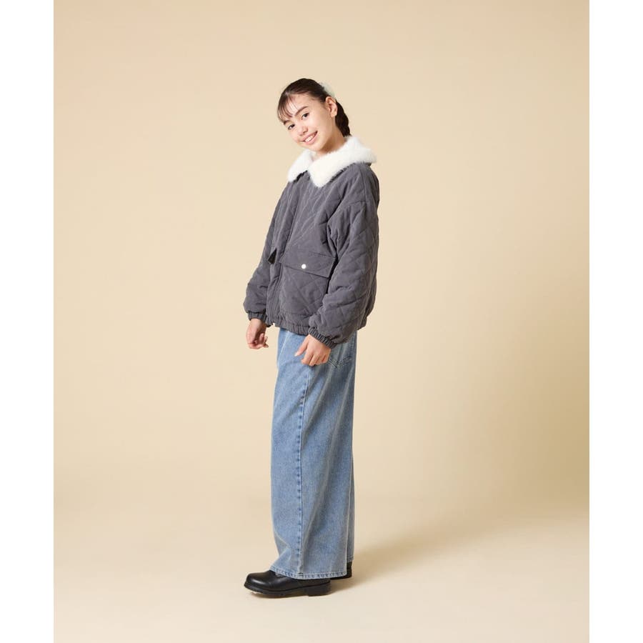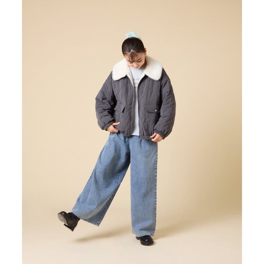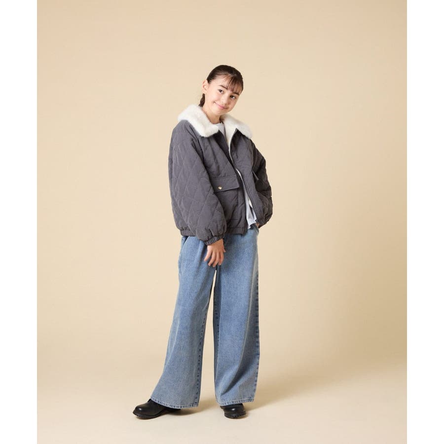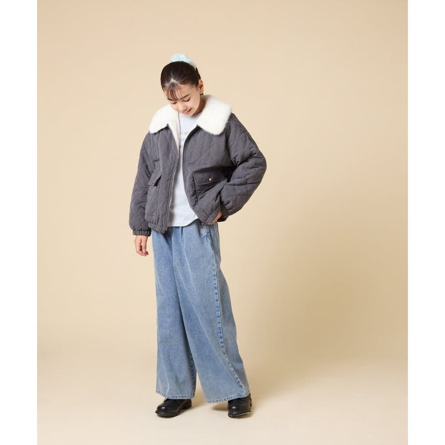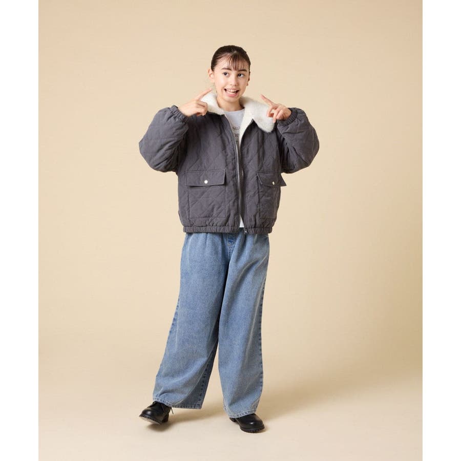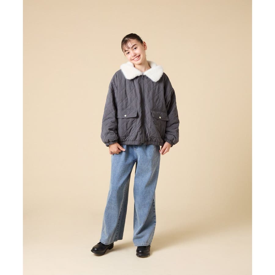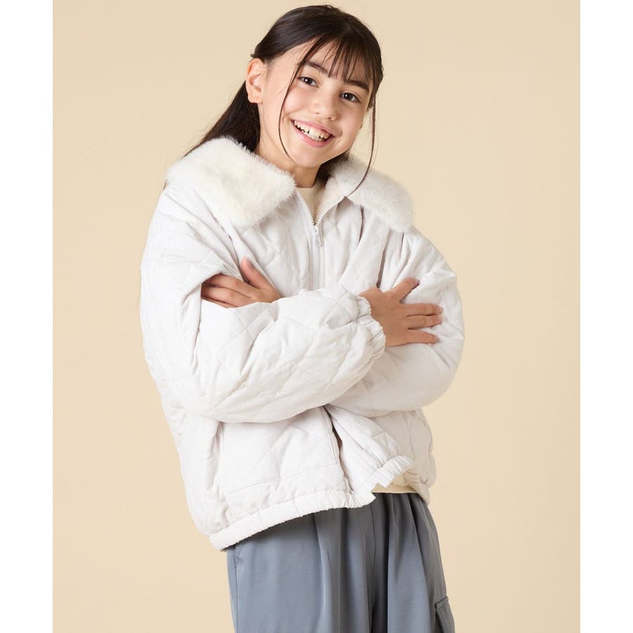 [130-160]【お家で洗える】衿付きキルトボアジャケット