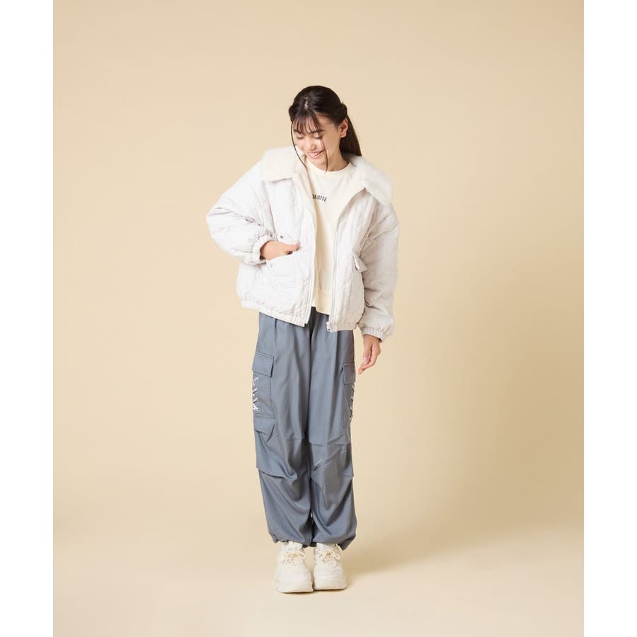 ・表面はキルトで、裏側には全面ボアを付けたショートブルゾン。
