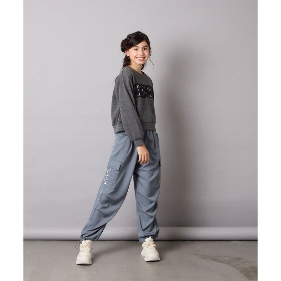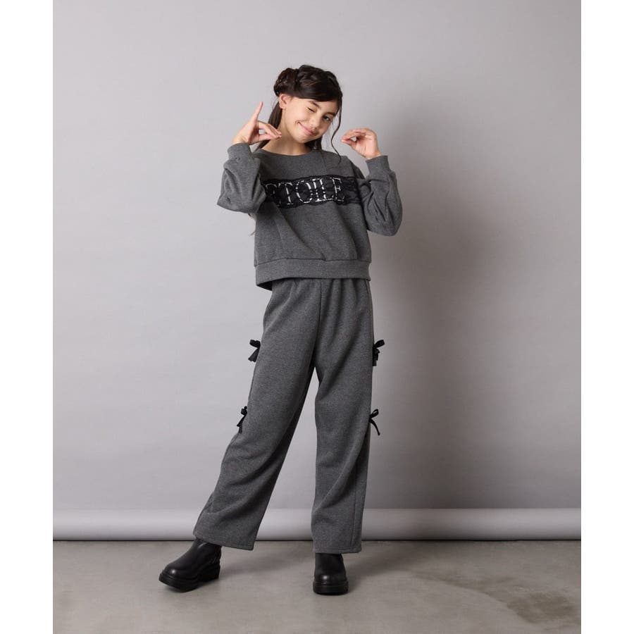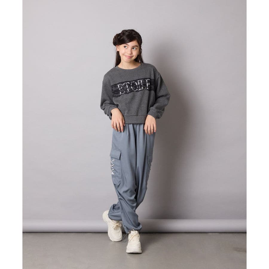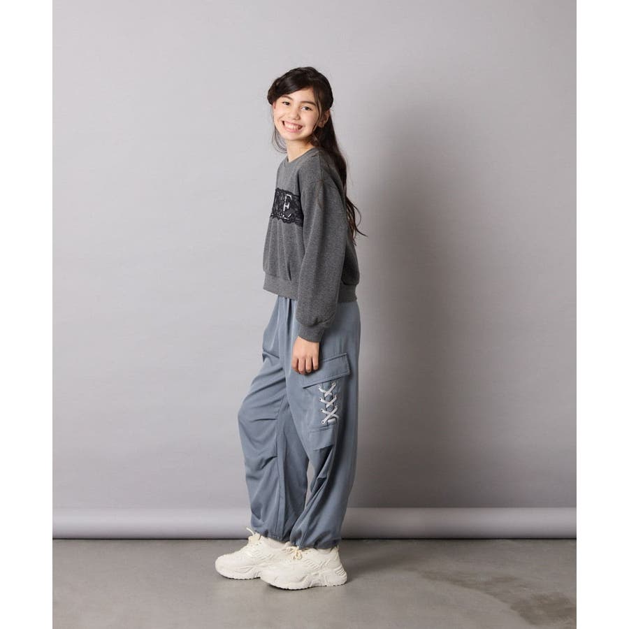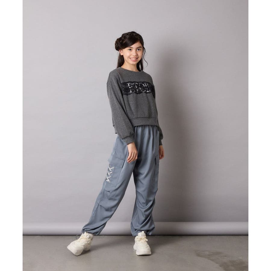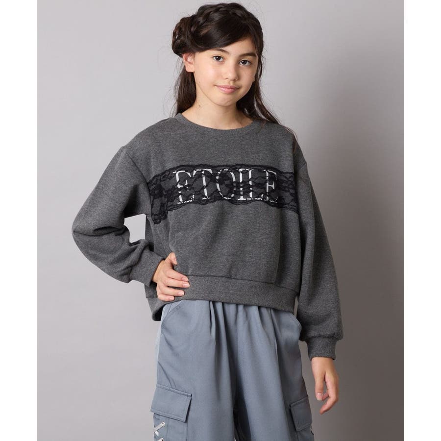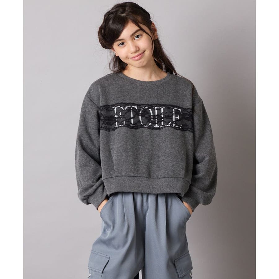 ・ロゴプリントの上に幅広レースを乗せた、リメイク感がオシャレ。