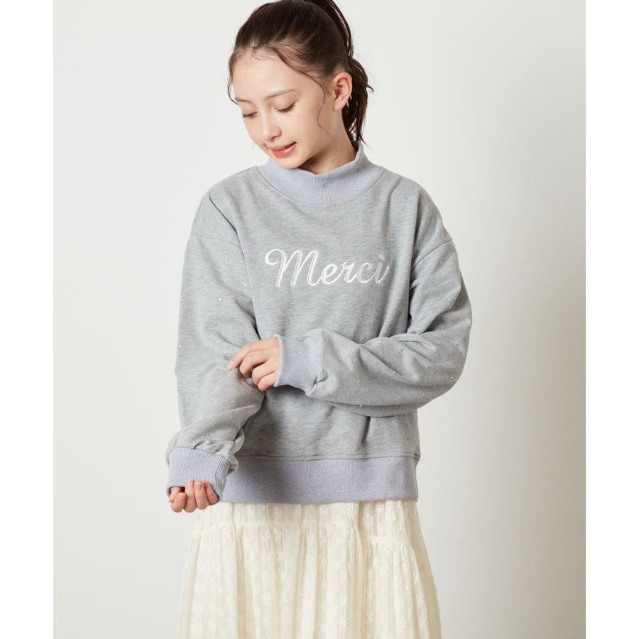 ・ライトグレーはフロント部分にロゴ刺繍と、袖部分にビジューが付いたデザイン。