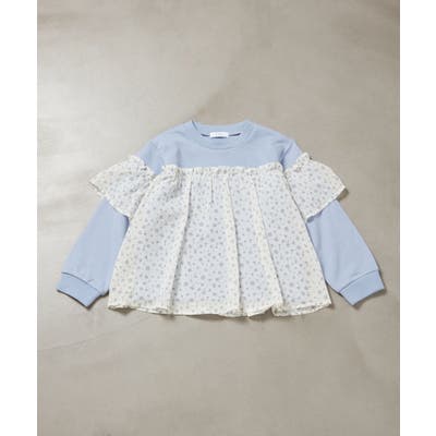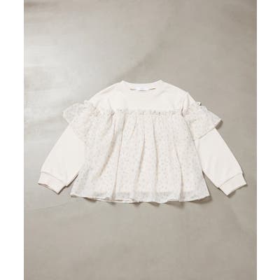 ・ふんわりとした異素材フリルをドッキングしたスウェットのプルオーバー。