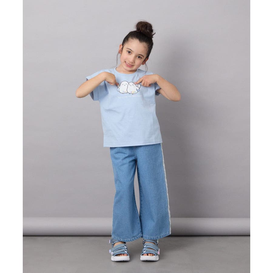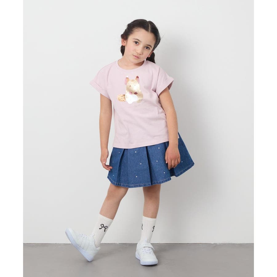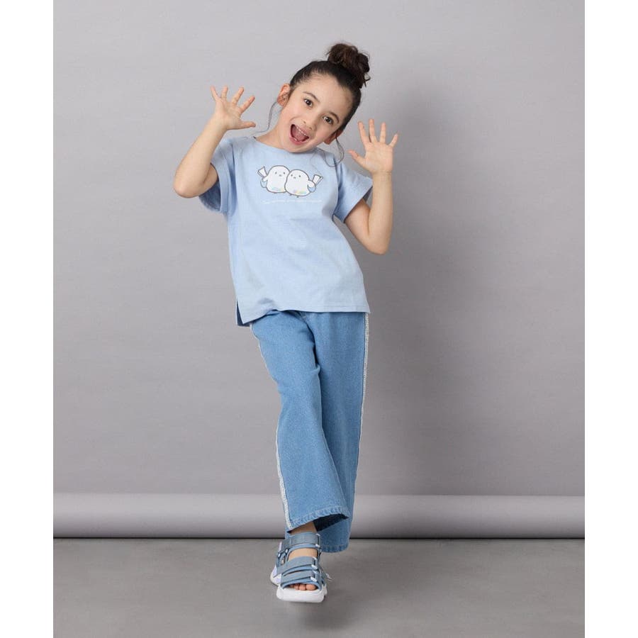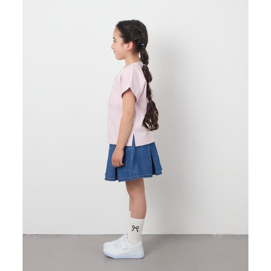・アートがかわいい半袖Tシャツは、シンプルなボトムと合わせるだけでコーデがサマになる。