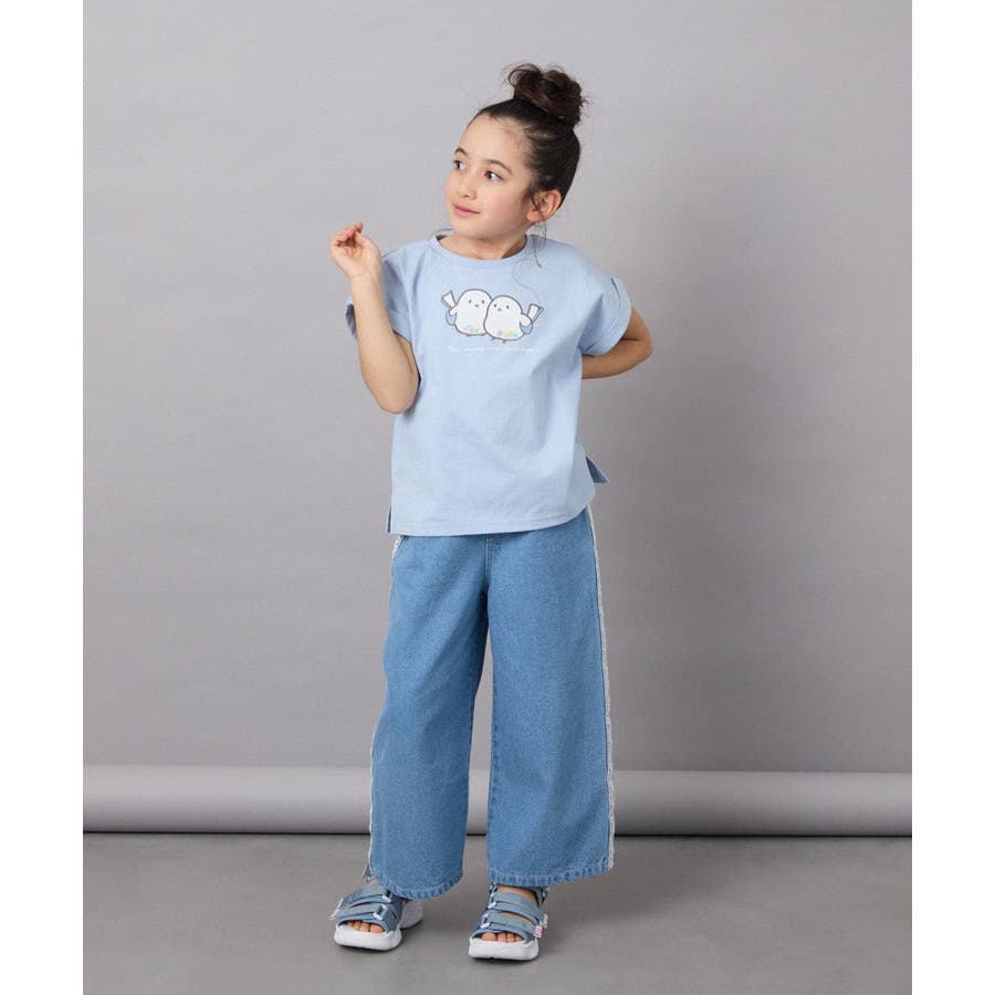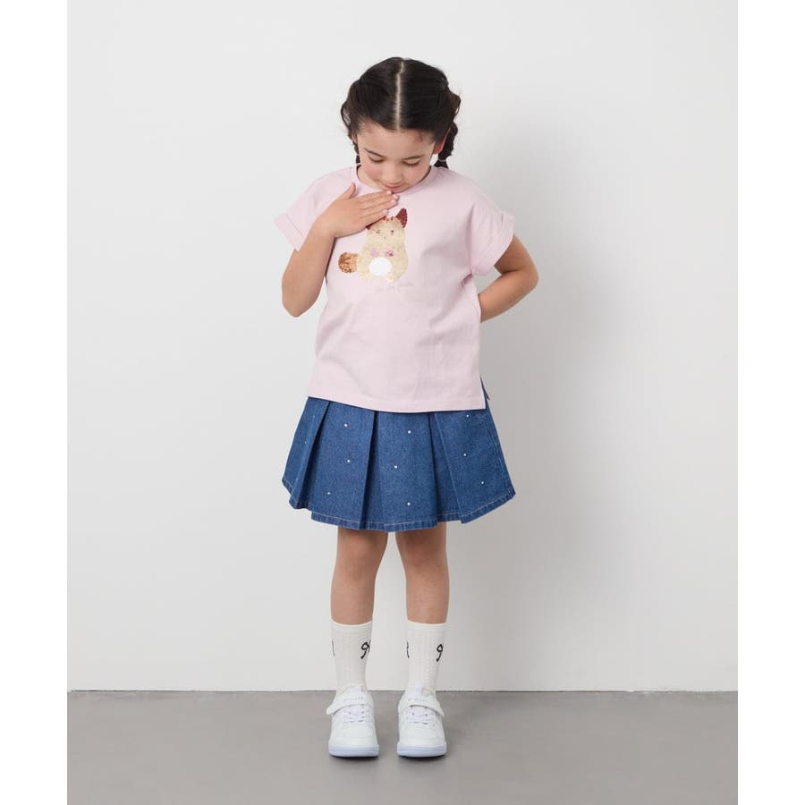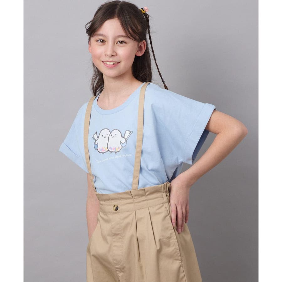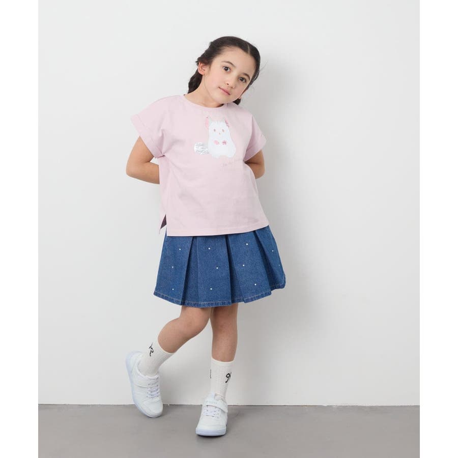 ・アートがかわいい半袖Tシャツは、シンプルなボトムと合わせるだけでコーデがサマになる。