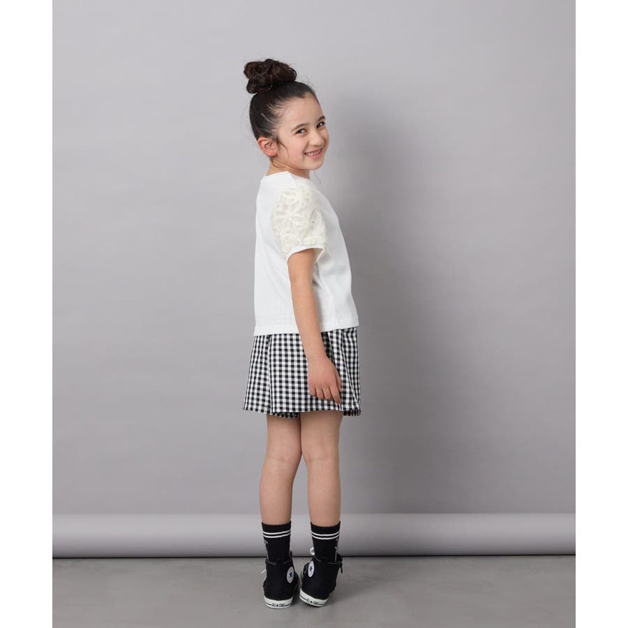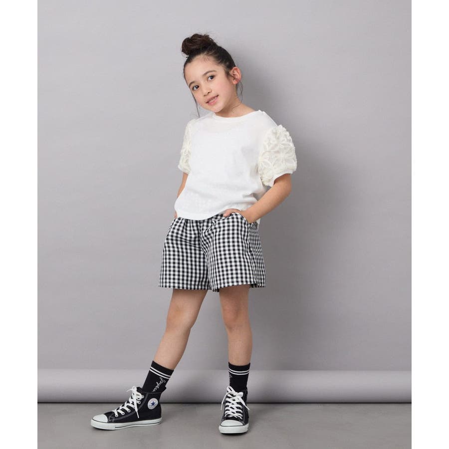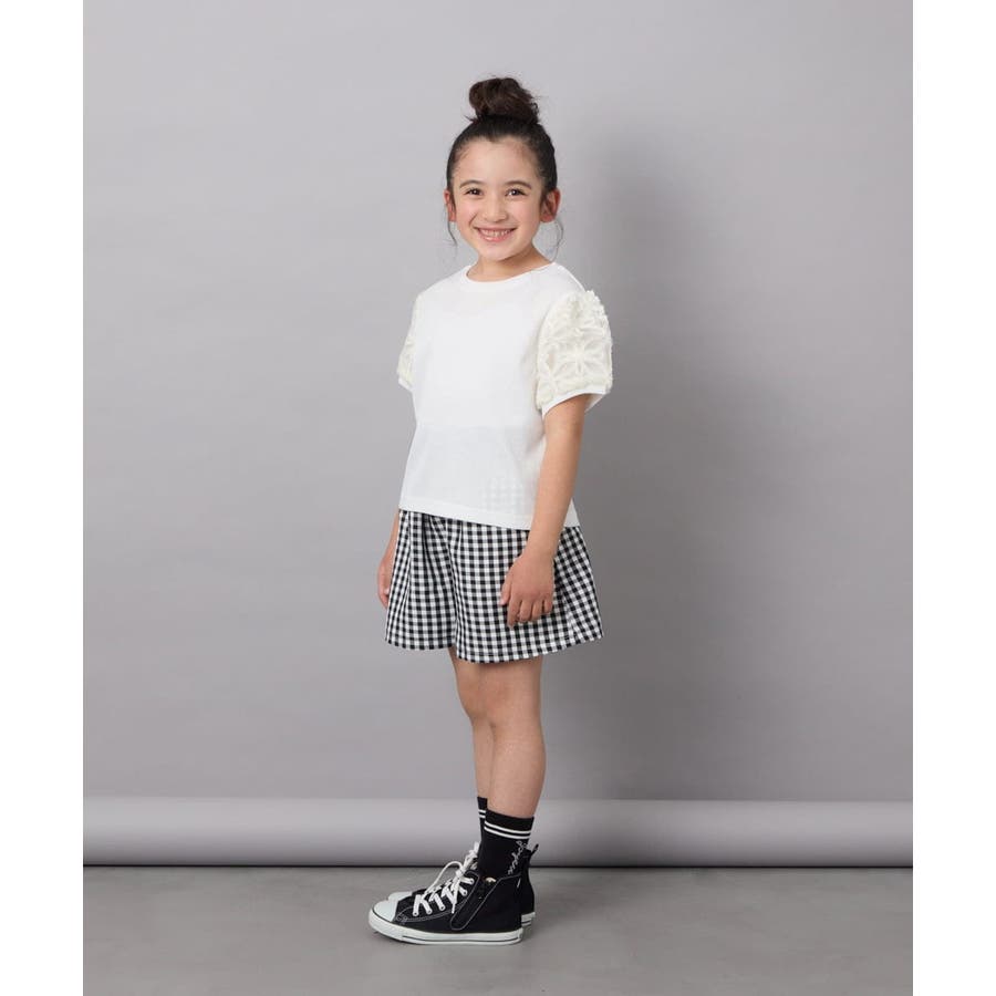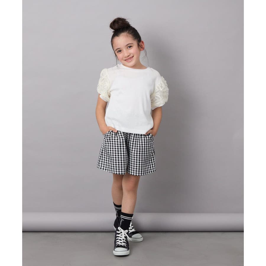 ・パフスリーブが女の子らしい半袖デザイン。