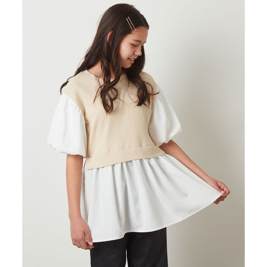 [100-130]ボリューム袖ドッキングトップス