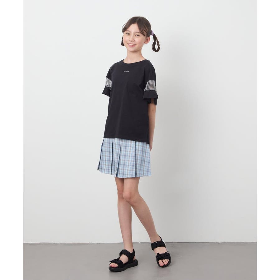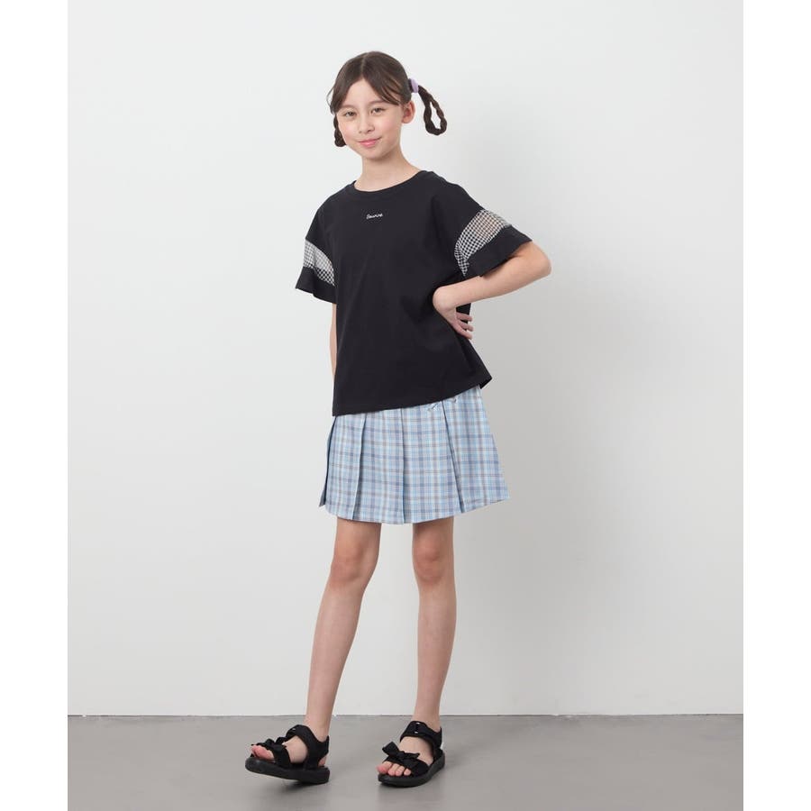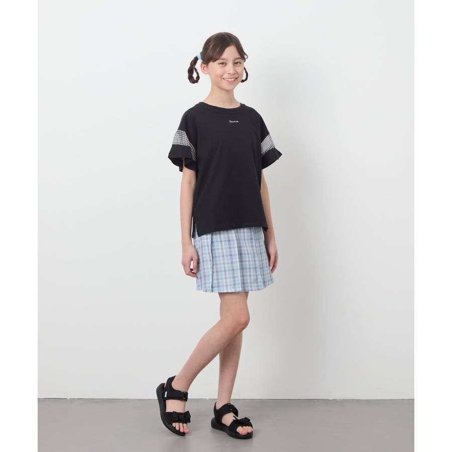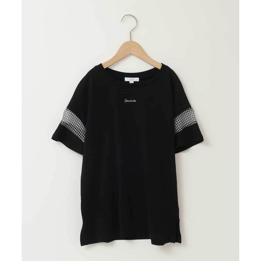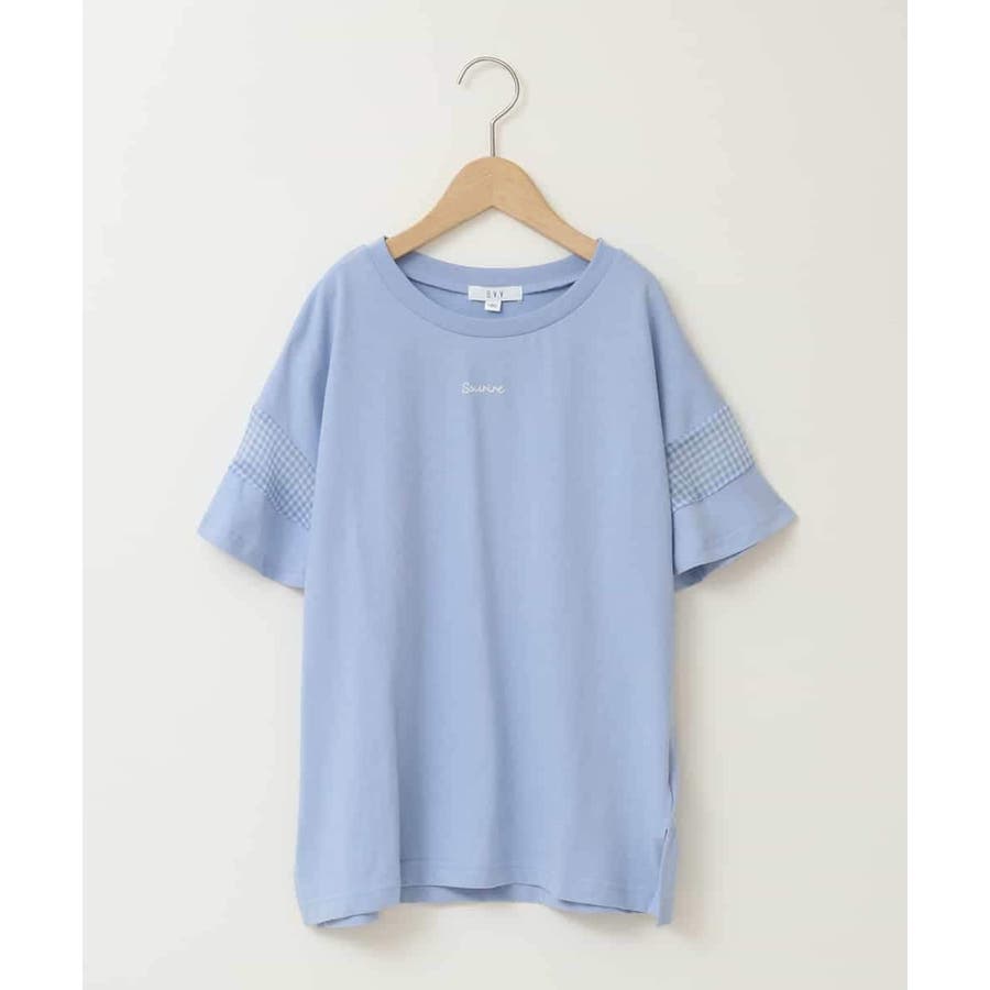 シアーギンガムキリカエスリーブTシャツ