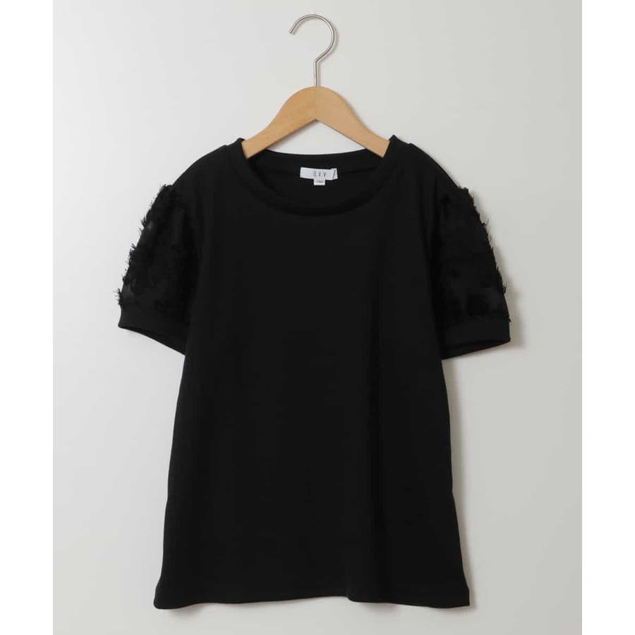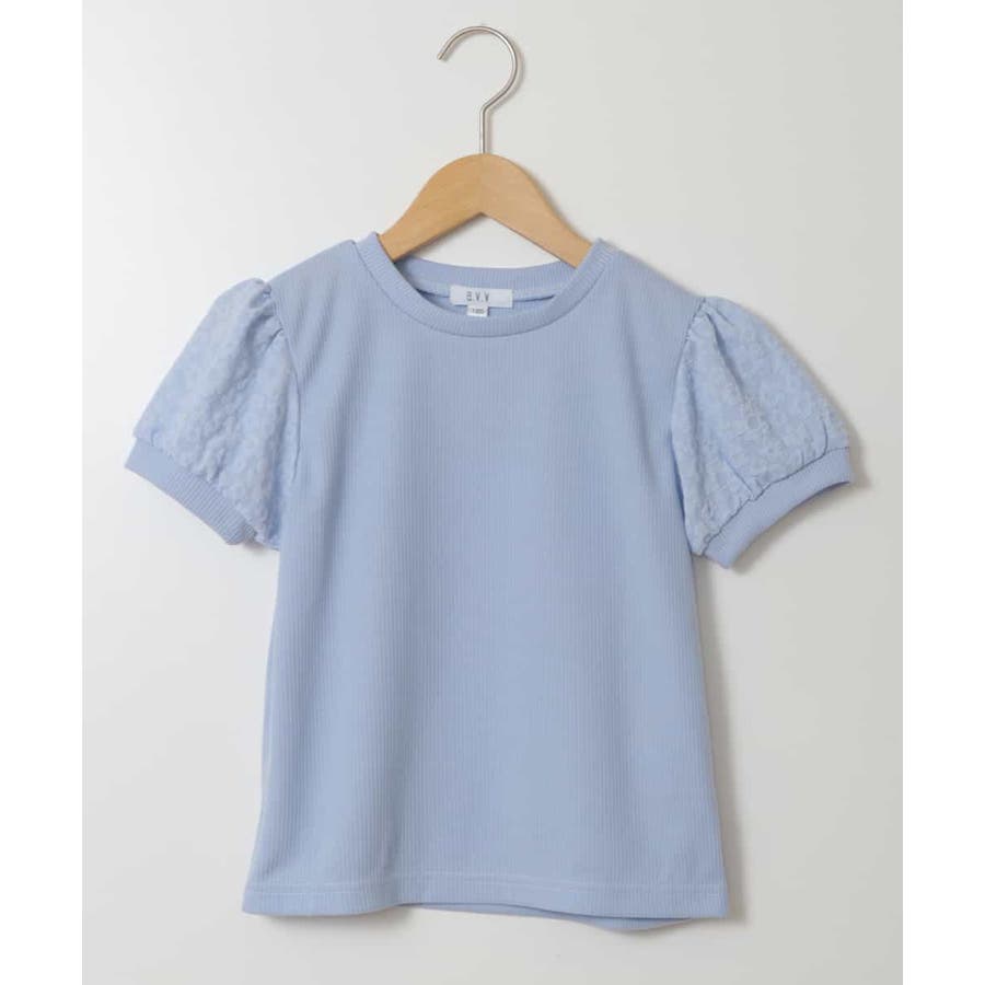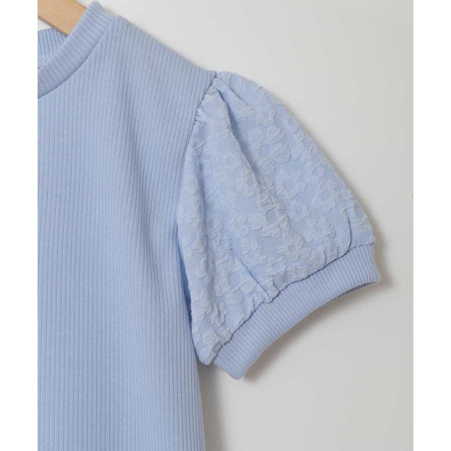 [100-130]【セットアップ対応】パフスリーブ異素材Tシャツ