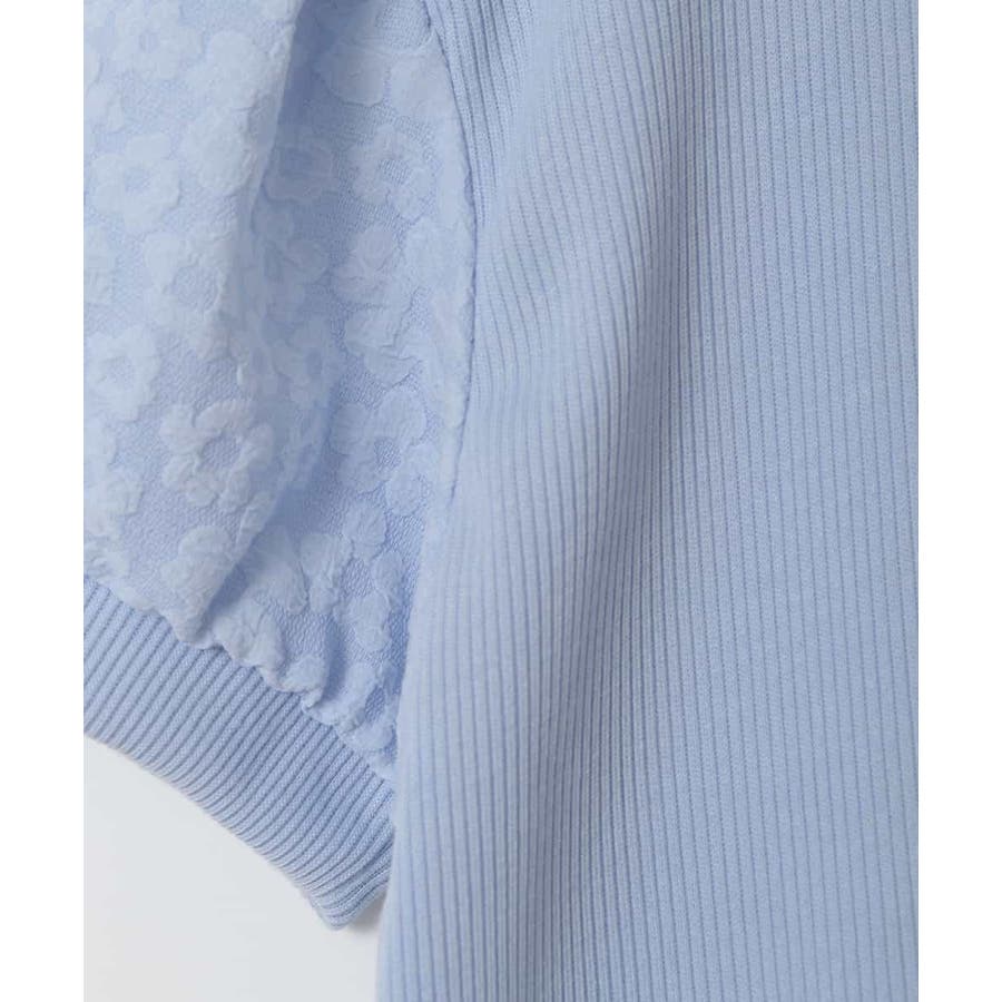 ・身頃はテレコ、ふんわりとした袖にはジャカードの異素材Tシャツ。