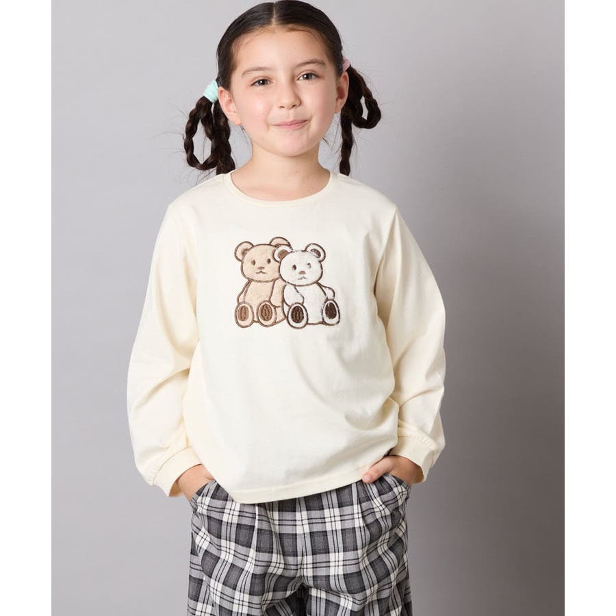 ・アイボリー…テディベア:クルクルしたファーのアップリケデザイン