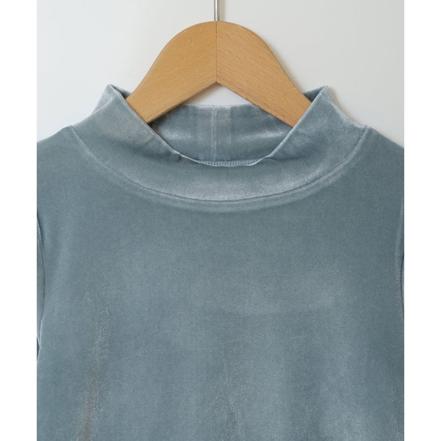 ・トレンドのベロア素材を使用したハイネックトップス。