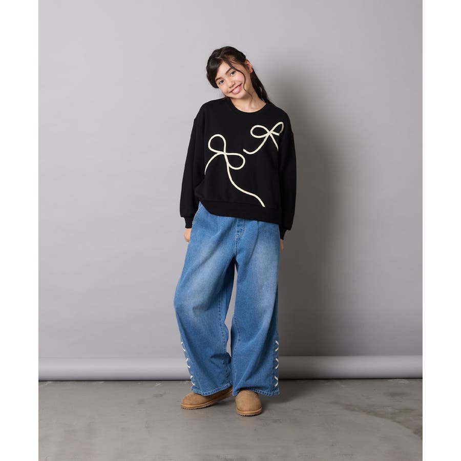 ・前身頃に配色のリボンテープを飾り付けしたおしゃれでかわいいスウェット。