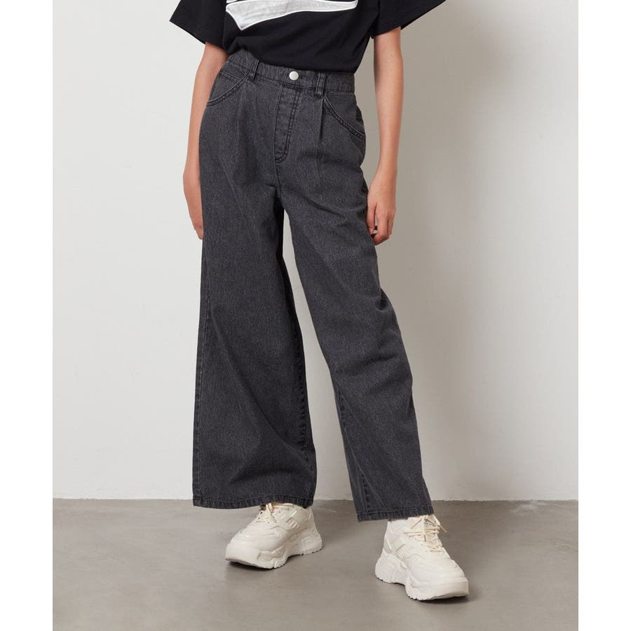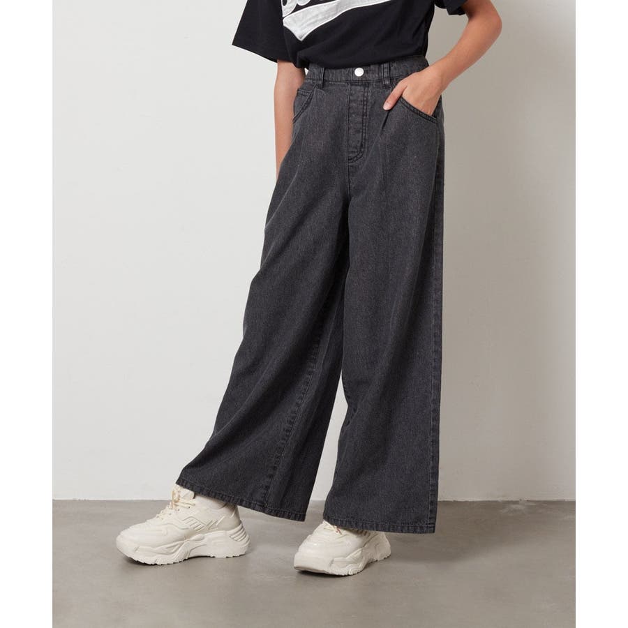 ・季節を問わず履ける定番のデニムワイドパンツ。
