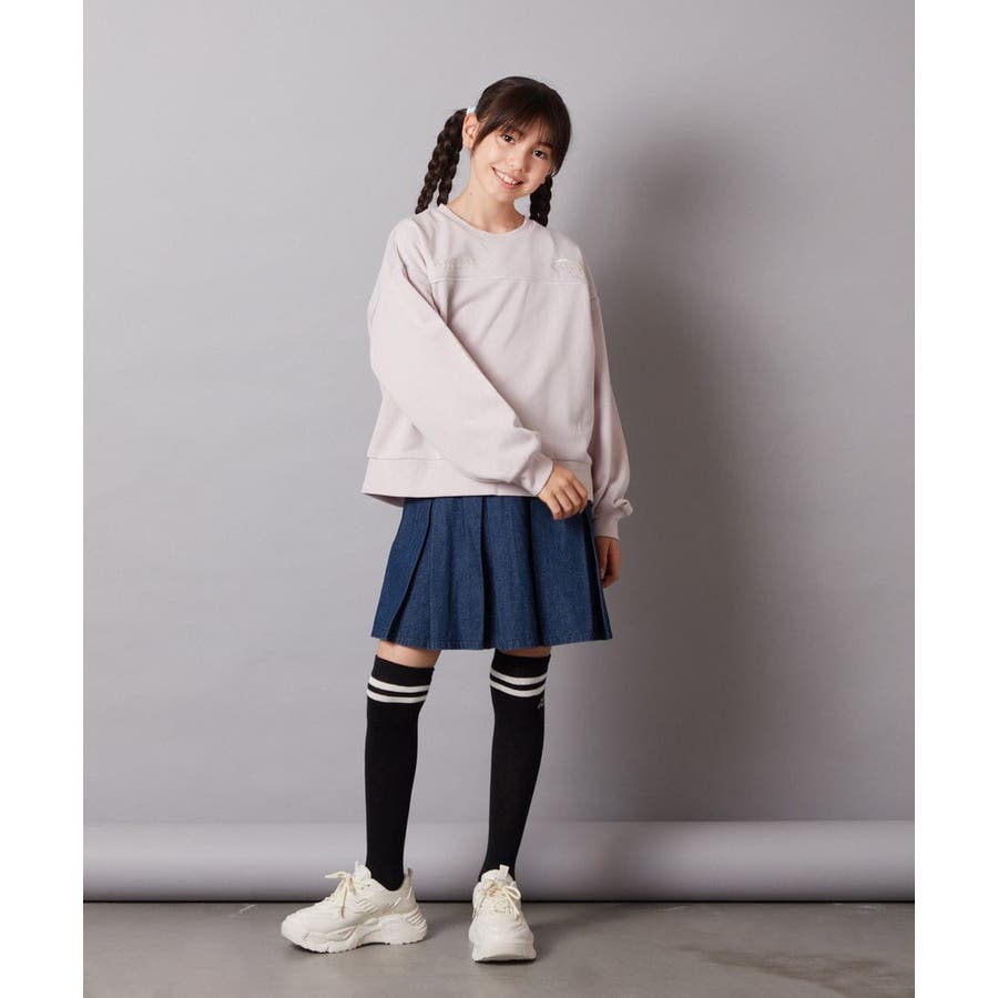 ・オーバーサイズのスウェットやフーディと合わせて裾を覗かせるスタイルもおすすめ◎