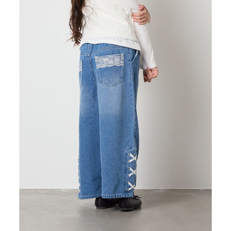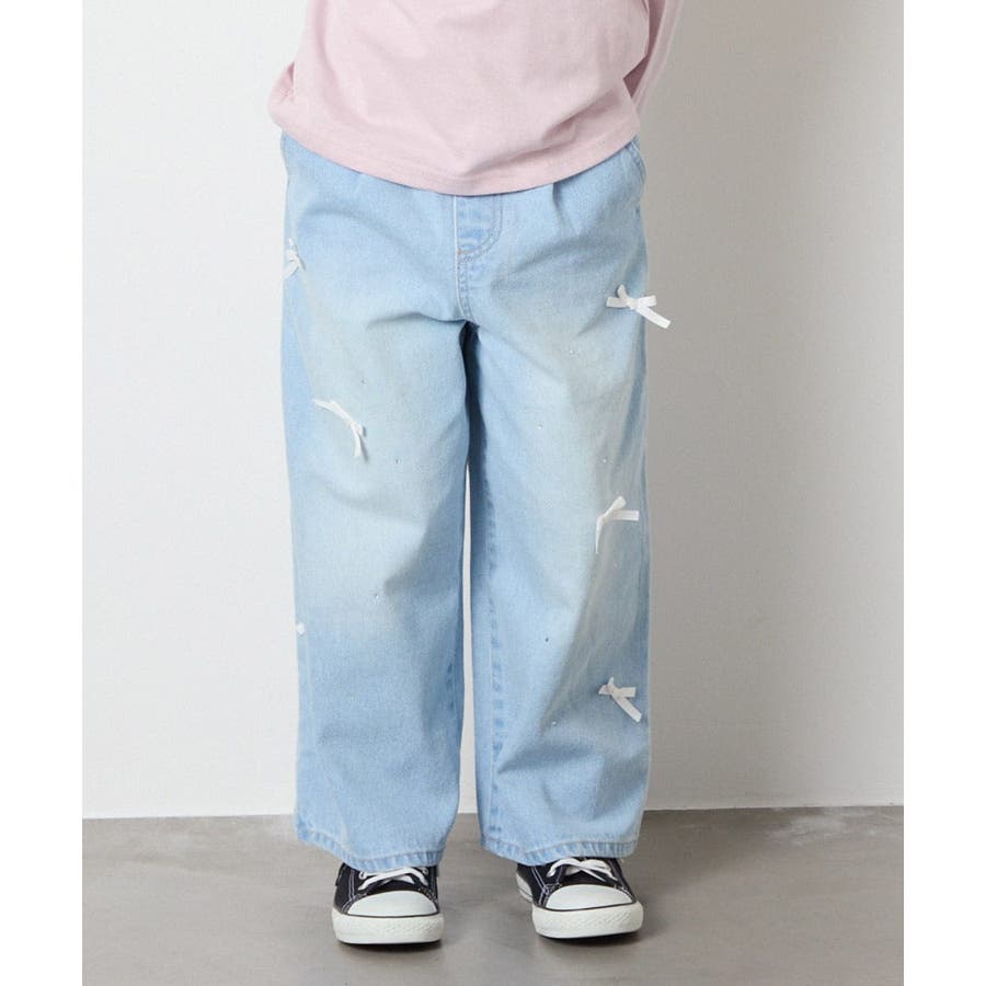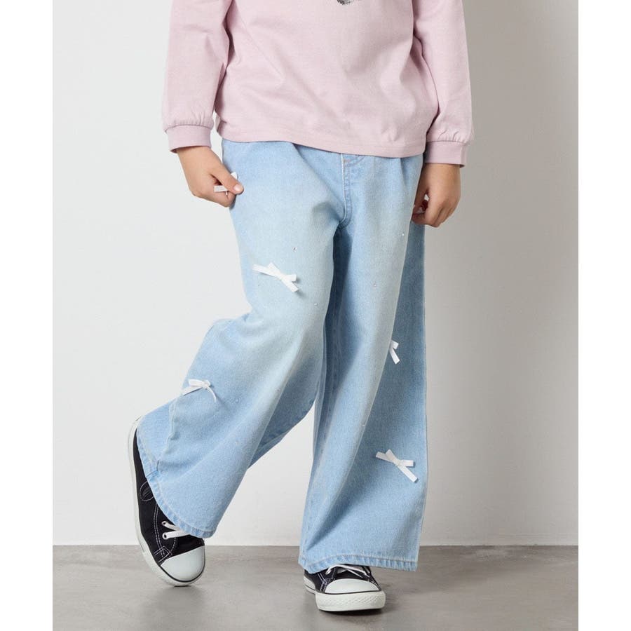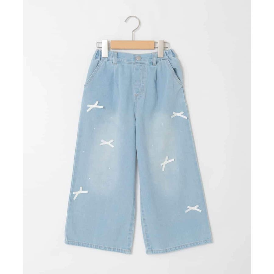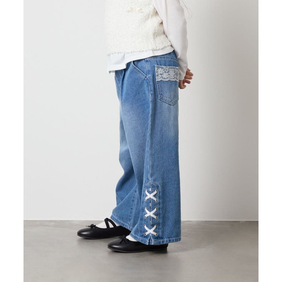 ・レースやリボン、ラインストーンを取り入れたトレンド感満載のデニムパンツ。