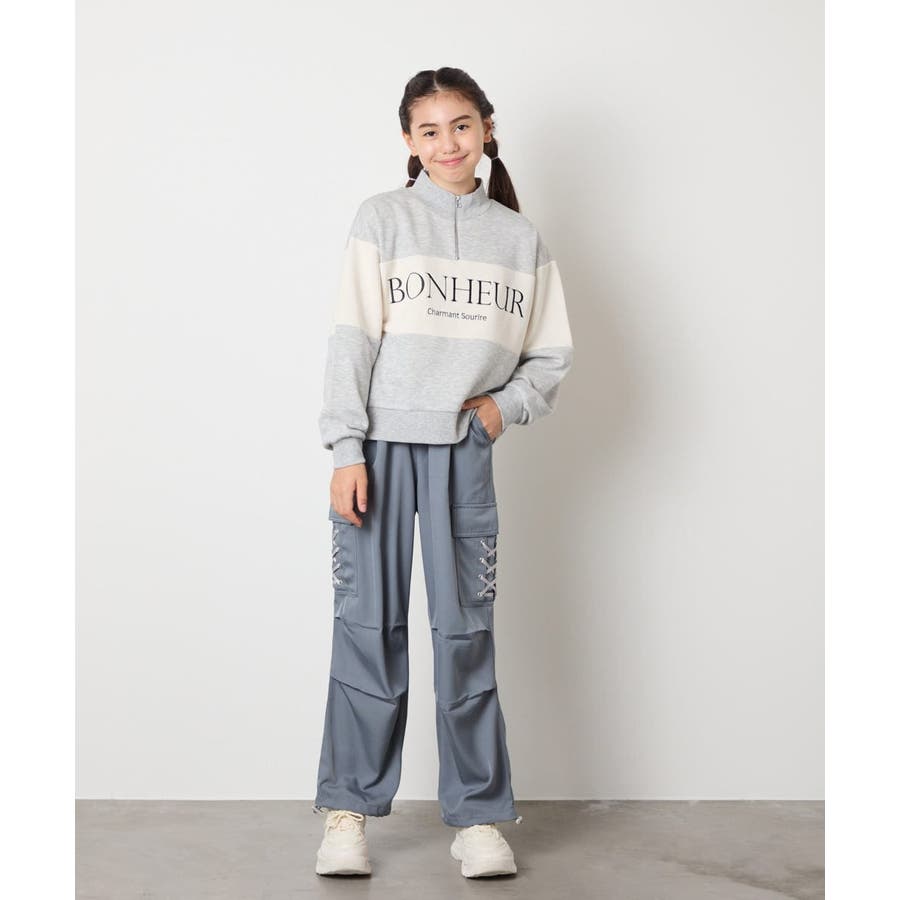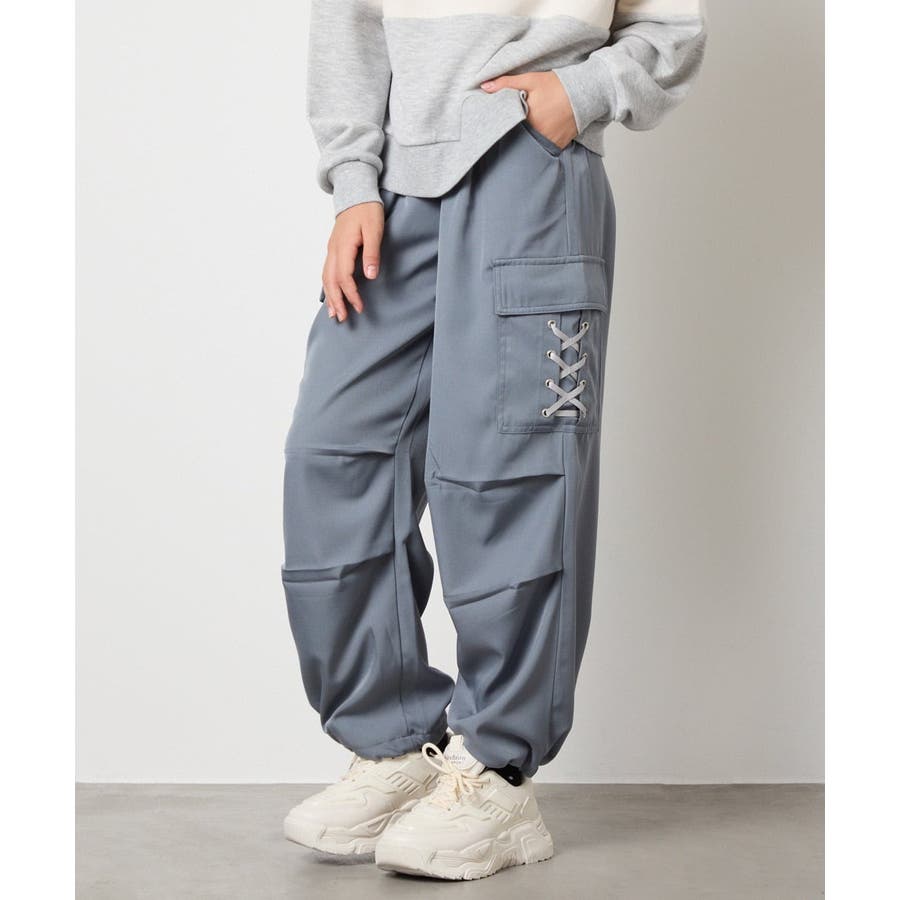 ・カジュアルなアイテムながらも、編み上げリボンをプラスした可愛いデザイン。