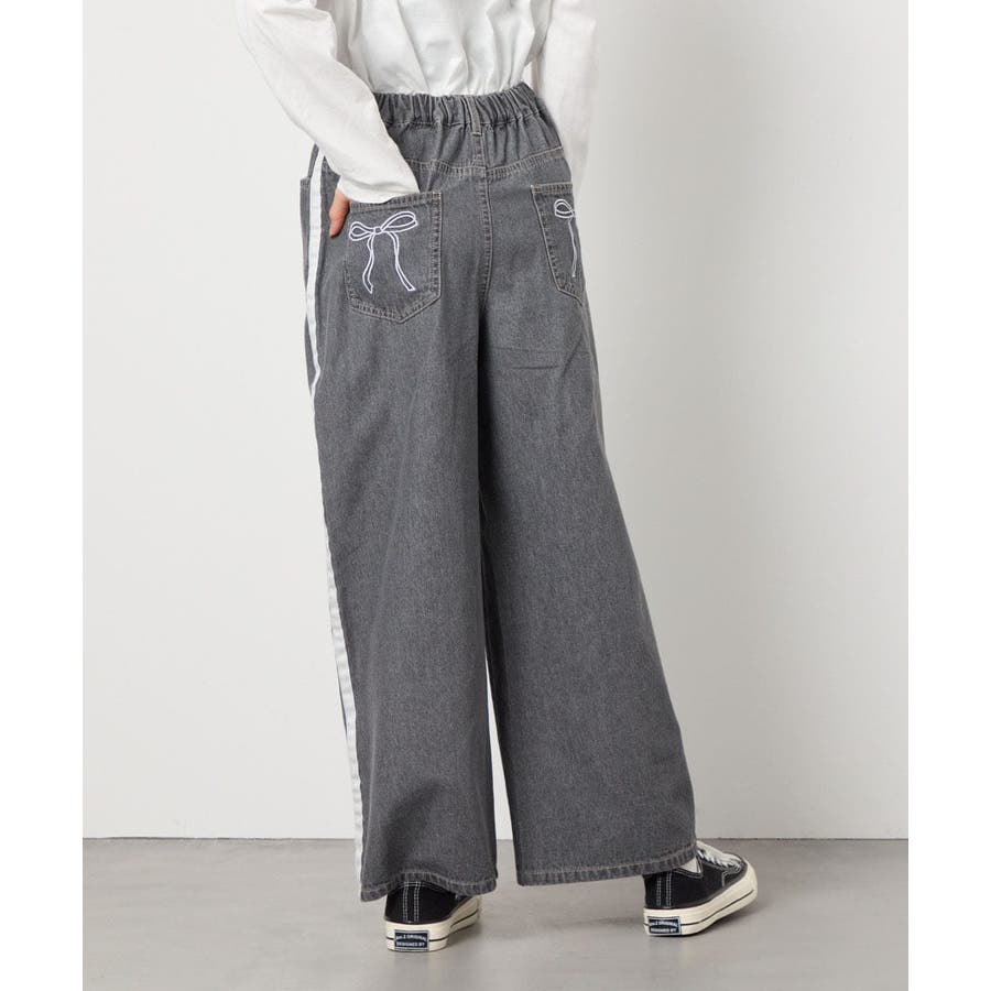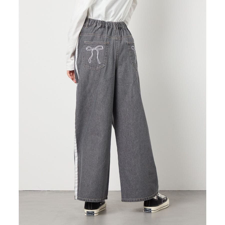 ・ブラック…両サイドにライン、後ろポケットにリボンの刺繍が施された甘辛スタイルに!