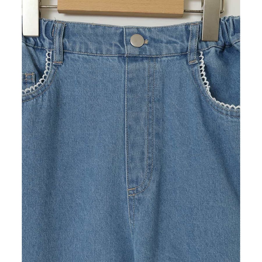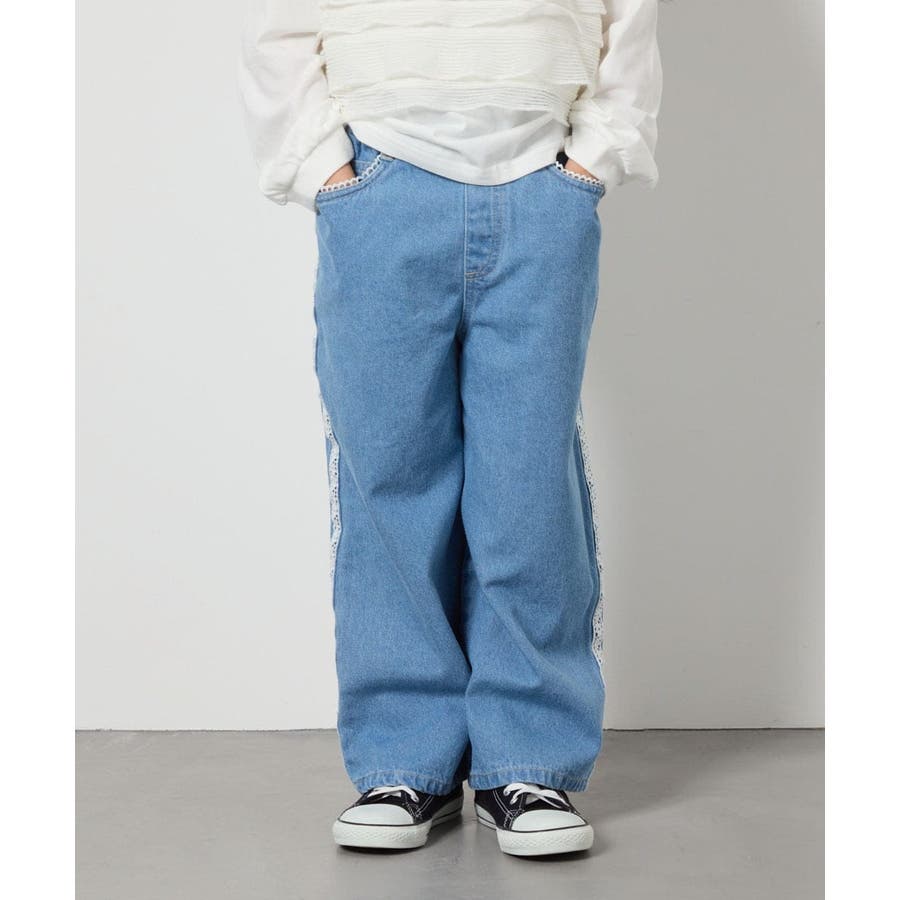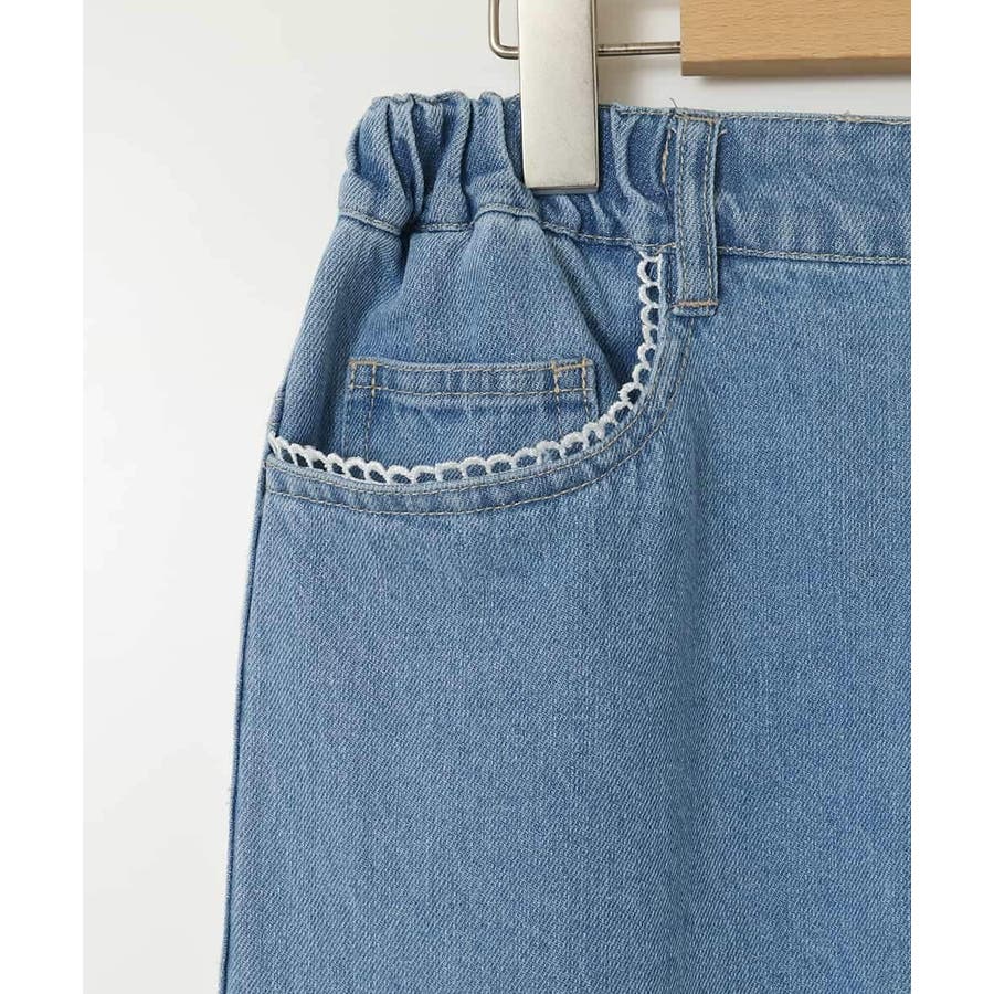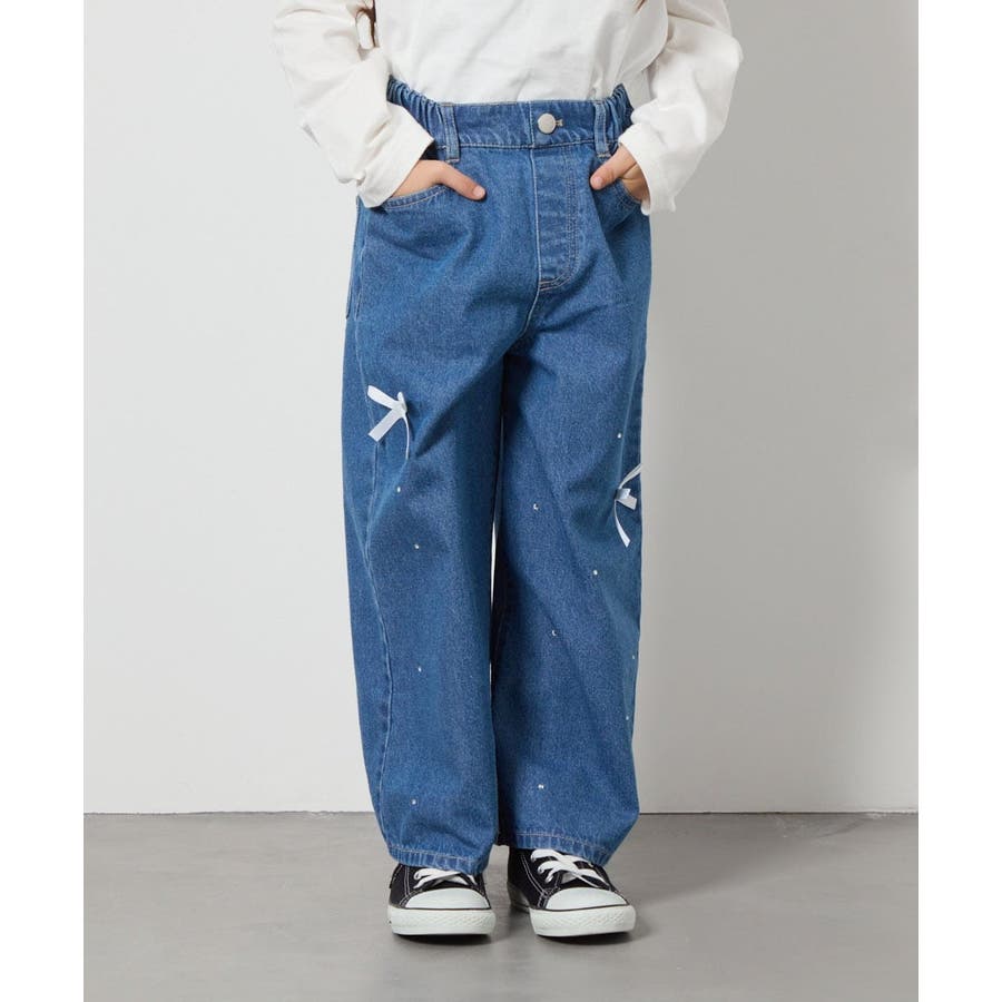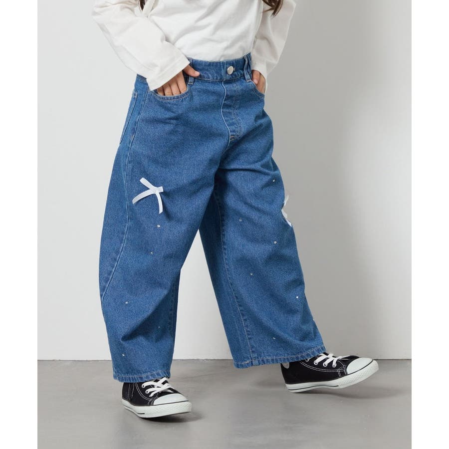 ・レースやリボン、ラインストーンを取り入れたトレンド感満載のデニムパンツ。