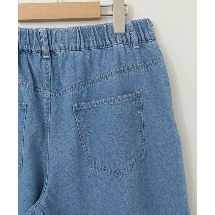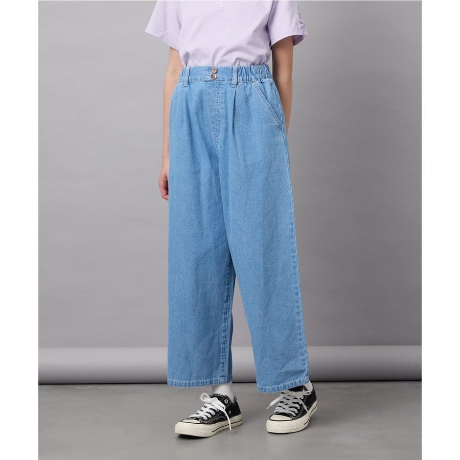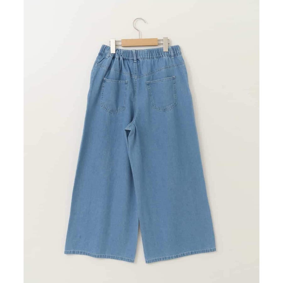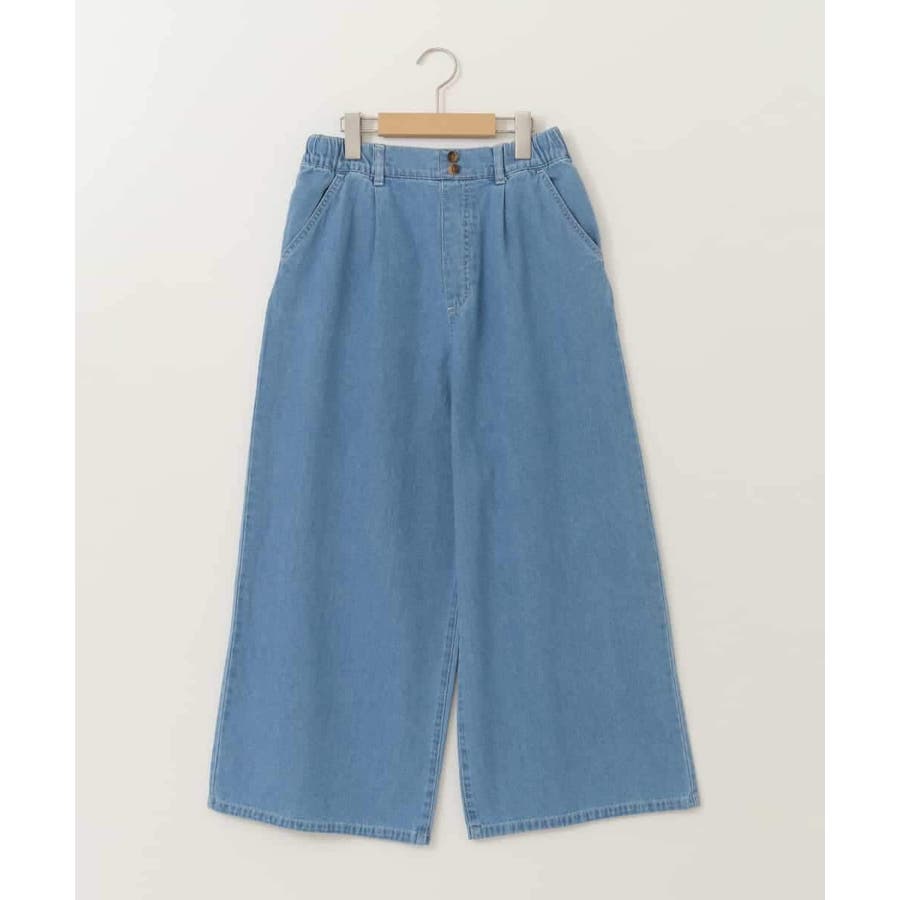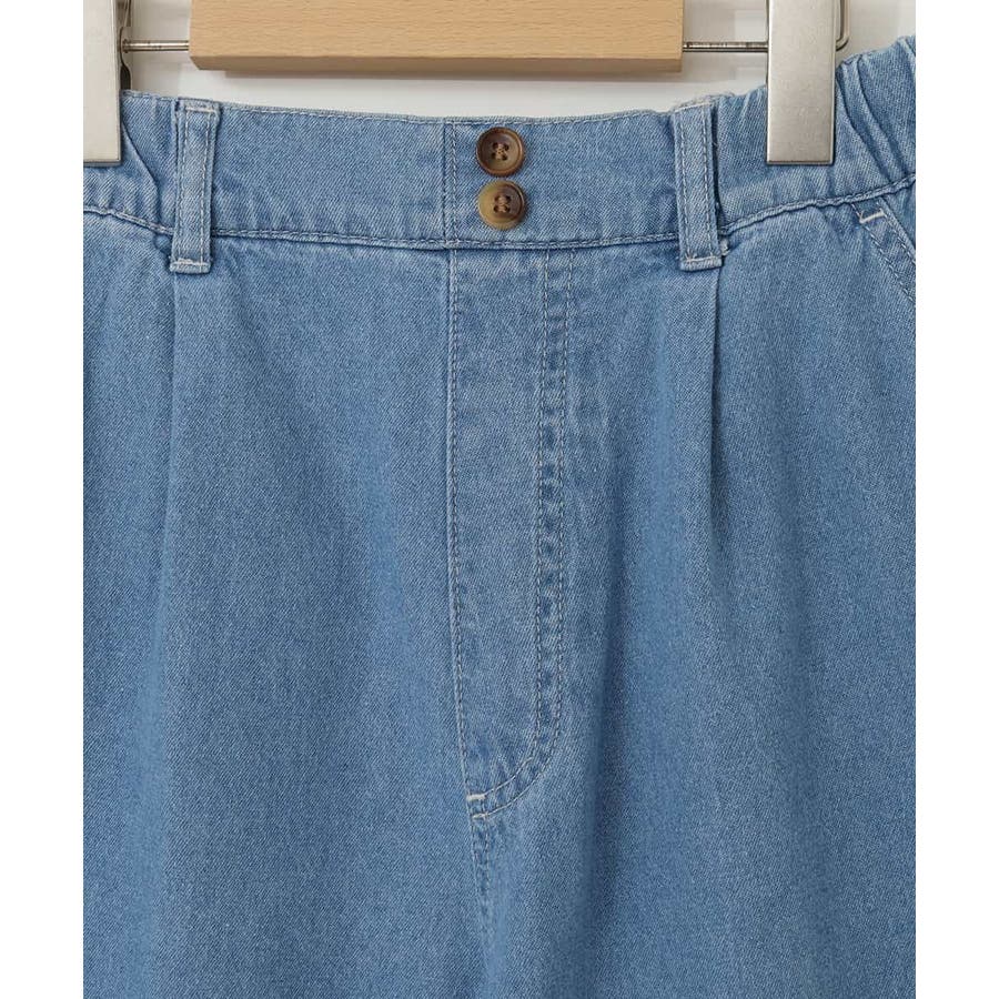 ・ウエストにタックを入れたゆったりなのにすっきり見えのワイドシルエットのデニムパンツ。