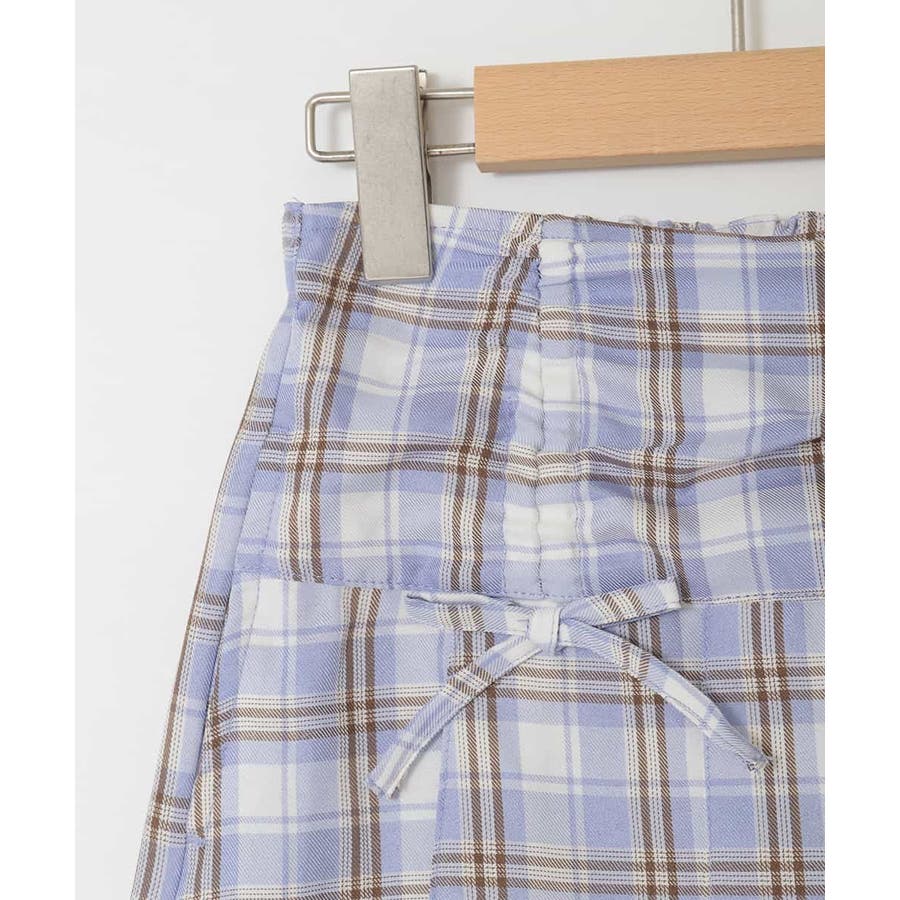 ・フロントのドロストとリボン、プリーツデザイン がトレンドライク なミニボトム。