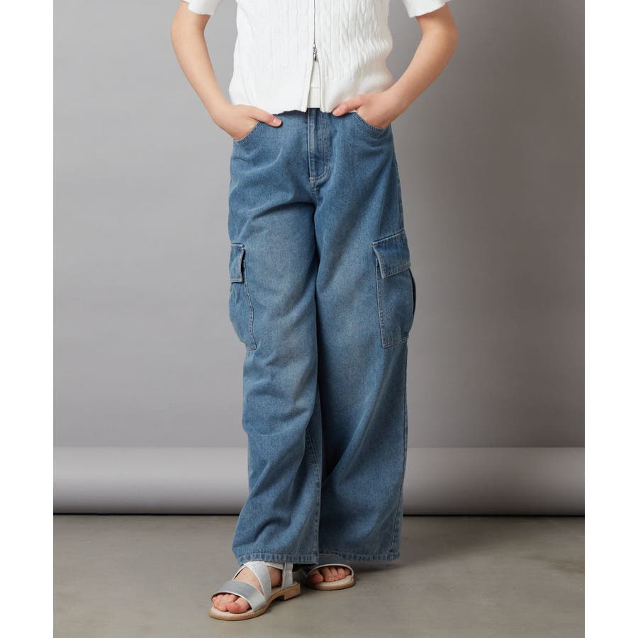 【ジュニア】[140-150]カーゴデニムワイドパンツ