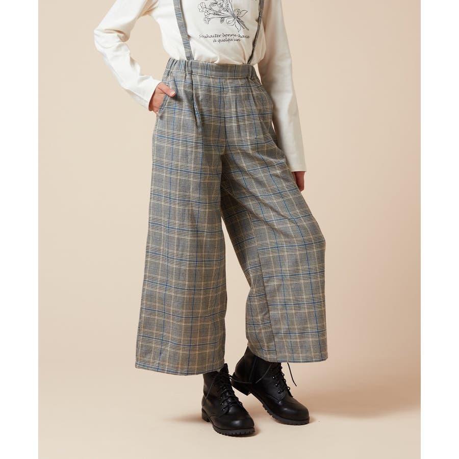 ・デイリー使いしやすいサスペンダー付きのワイドドパンツ。