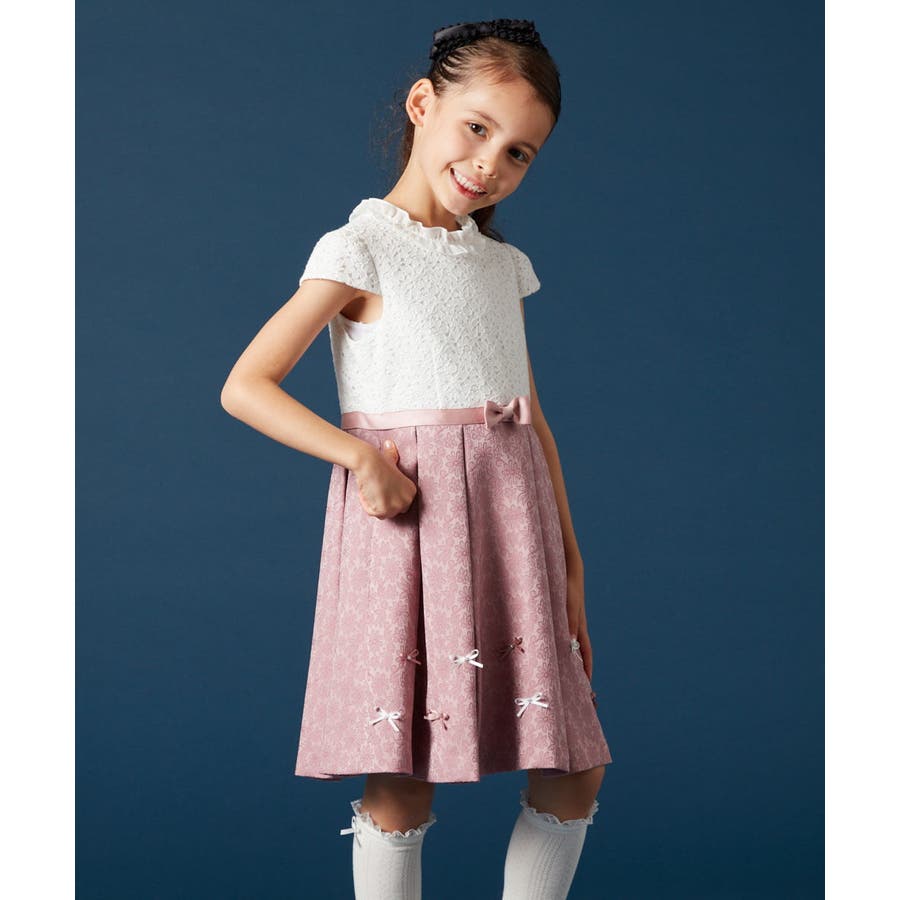 [110 130]【セレモニースタイル】レースジャガードフィット&フレアワンピー…