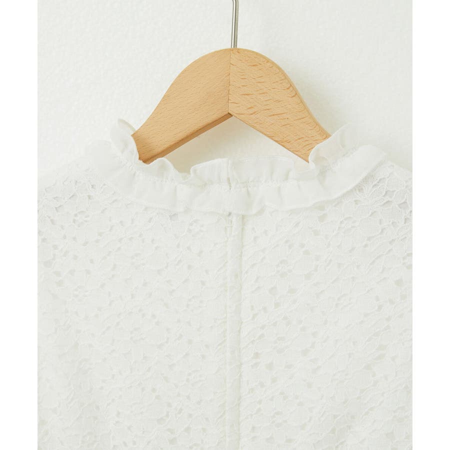 ・襟元にはフリルが施されていて、顔周りを明るい印象に。