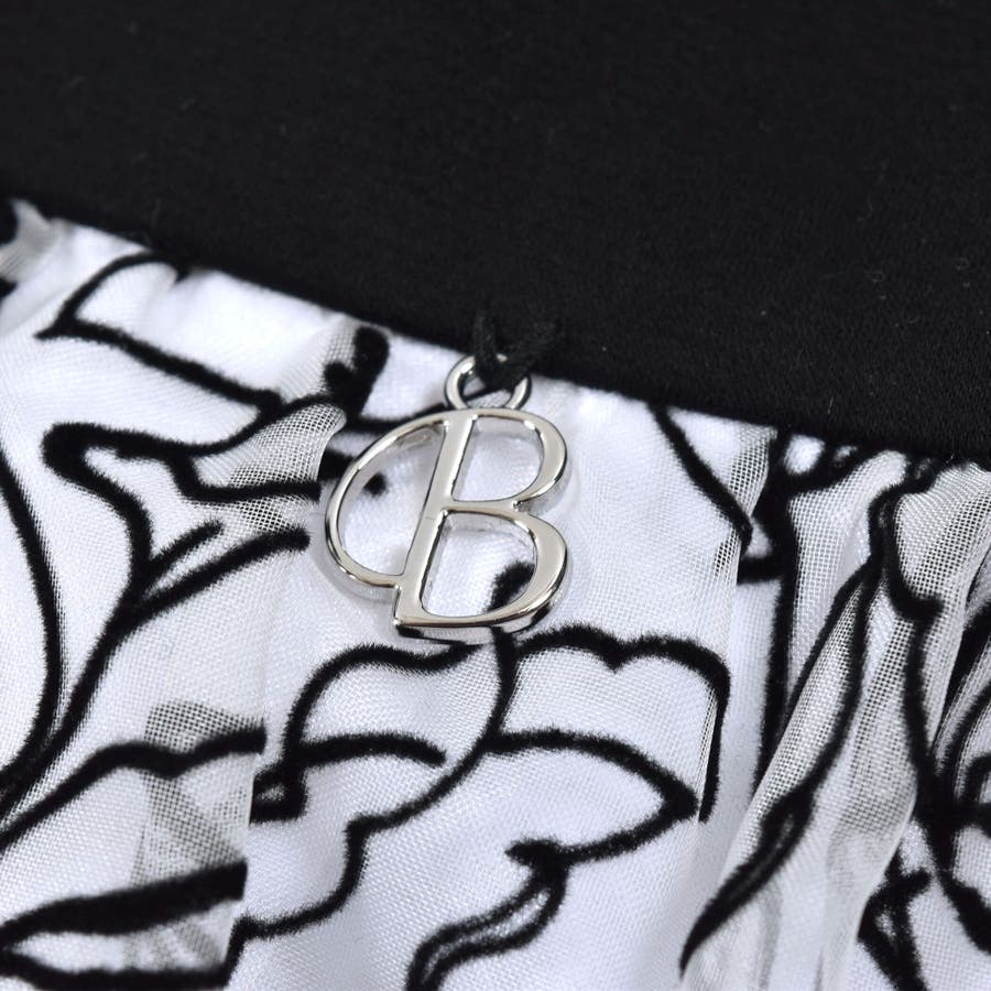 小さめのお袖がすっきりとした印象をプラス、高め位置の切替にはBチャームを付けてさりげないポイントにしています。