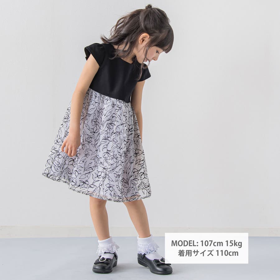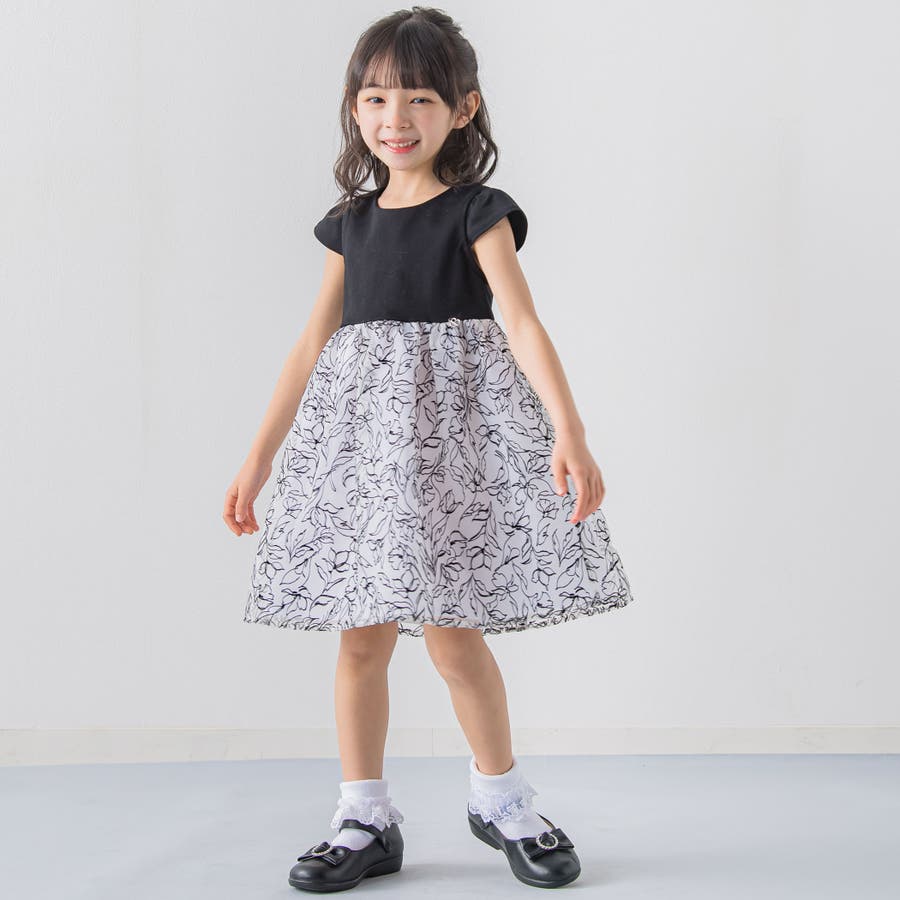 日本製ポンチ花柄フロッキー切替ワンピース(100~150cm)