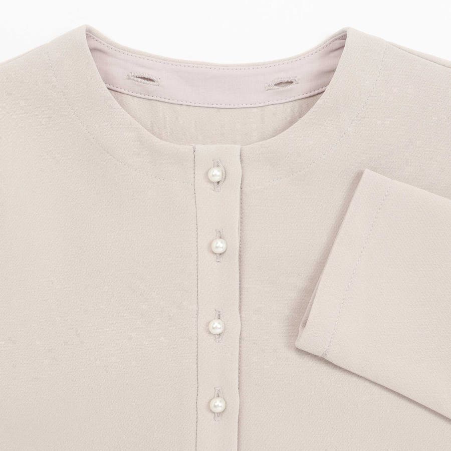 胸元には小さめのパールボタンを並べてオケージョンシーンにもピッタリな特別感を演出。