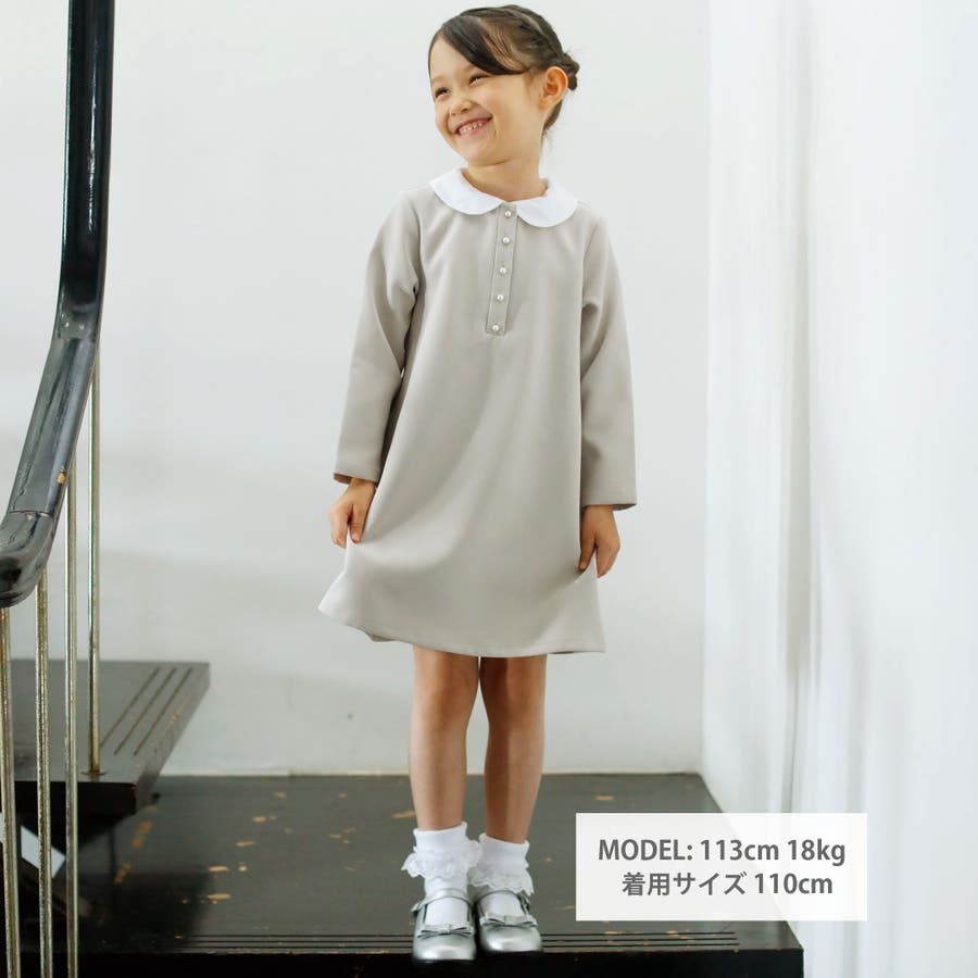 付け襟3wayパールボタンダブルクロスワンピース(100~130cm)