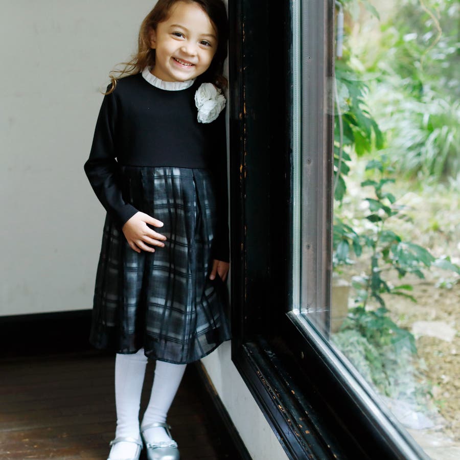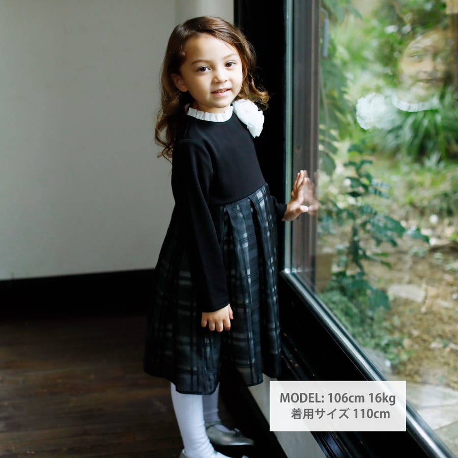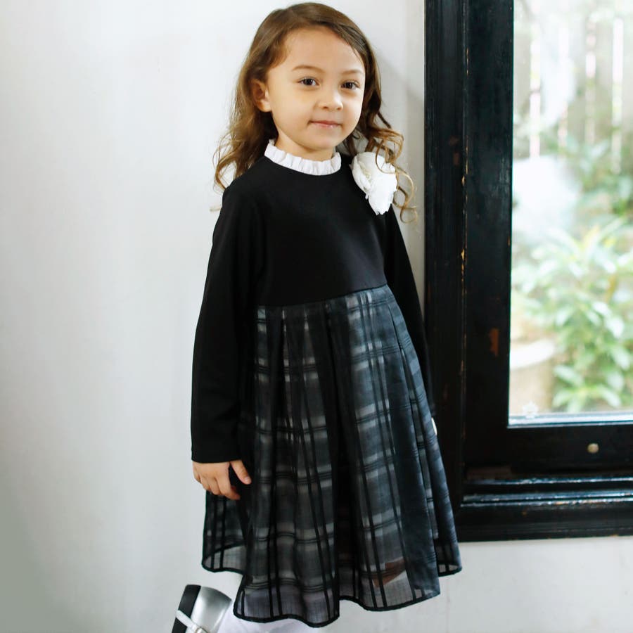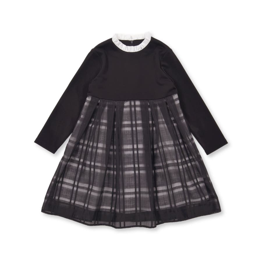 フリル襟シアーチェック切り替えワンピース(110~130cm)