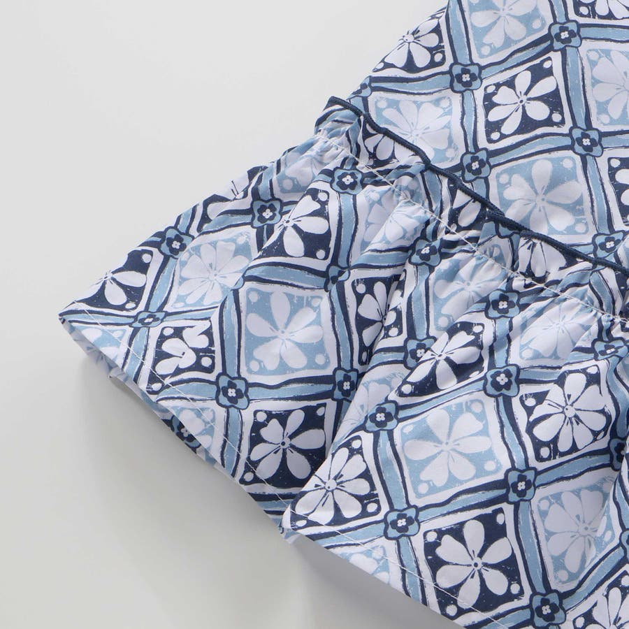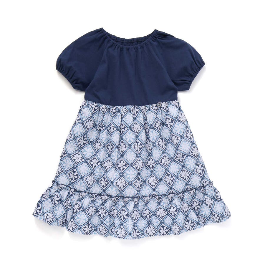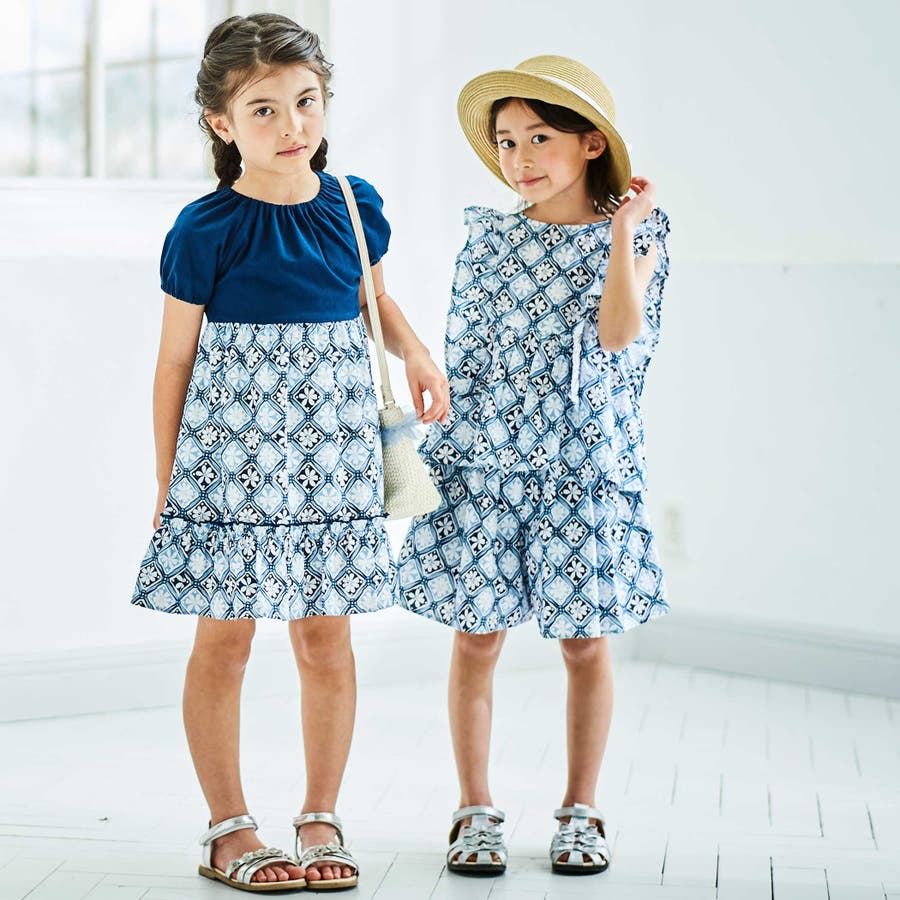 【お揃い】復刻アーカイブタイル柄切り替えパフスリーブワンピース(90~150cm…