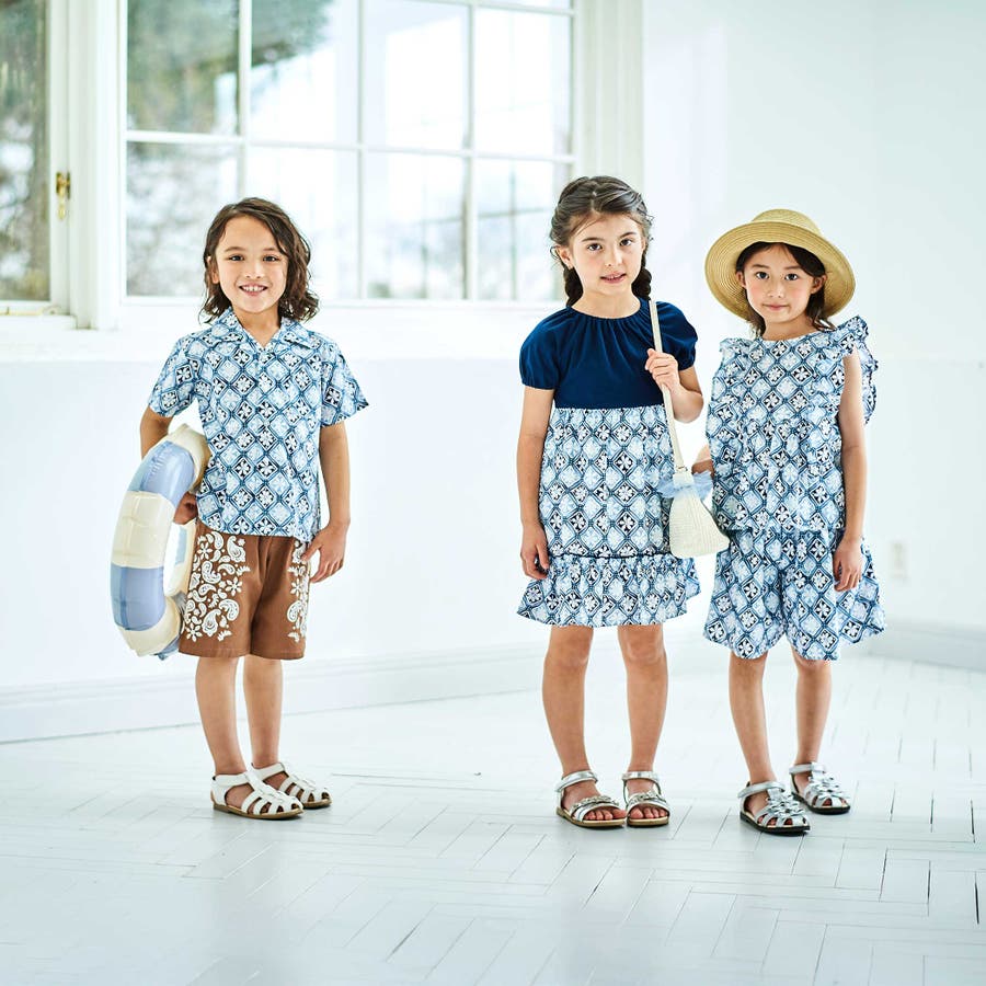 同じ生地を使用したブラウス(1106-73008)キュロット(1110-73058)フリルTシャツ(1115-73121)ボーイズシャツ(1106-73019)ボーイズTシャツ(1115-73143)も展開。