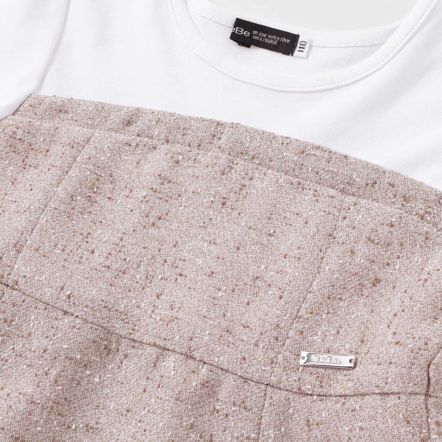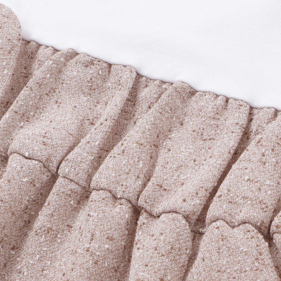 なめらかな質感で肌触りの良いスムース生地に、秋冬のシーズンムードを取り入れられるツイード生地をドッキング。