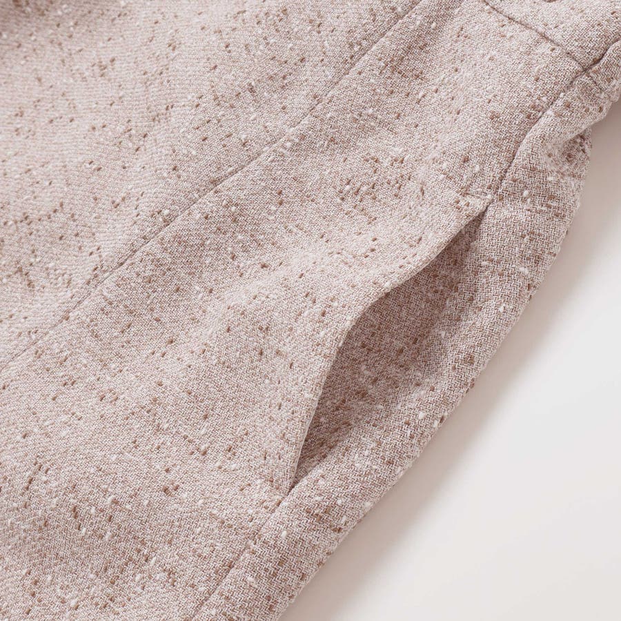 薄手ながらもつぶつぶとした節感のある表面が温かみのある雰囲気に見せてくれるネップツイード生地を使用しています。
